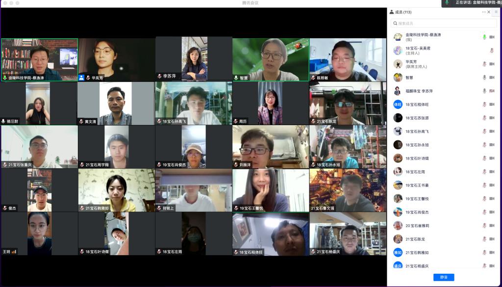 韶华似水,时光绕指渐行,转眼间一年一度的毕业季如约而至。为了帮助材料工程学院宝石及材料工艺学专业的同学们更好地了解就业形势,掌握就业信息,解答就业疑惑,树立正确的就业观,5月10日19:30,宝石专业举办“和孩子们:谈就业、谈企业发展,谈未来人生规划--宝石专业就业线上分享会”。材料工程学院党委副书记陈智慧出席活动,学院就业指导老师华岚芳、宝石专业教师蔡逸涛共同主持,4位珠宝行业不同领域专家与同学们线上分享。宝石专业全体师生参加。