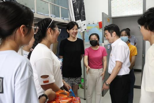 副校长顾晓燕、纪委副书记周骏等一行领导也来到商学院新生接待点,看望前来报到的新同学,对他们的到来表示热烈欢迎,并慰问在迎新一线服务的志愿者们,对他们的辛苦付出表示感谢。随后,商学院党委副书记孙亮、学工办主任顾磊、副主任徐冰洁与部分辅导员一起带着蛋糕前去看望于9月14日过生日的三位寿星,祝他们生日快乐,使他们感受到商学院大家庭的温暖。除此以外,还带着鲜花看望了今年beat365文、理科状元,希望他们能在大学生活中继续保持初心,努力前行。