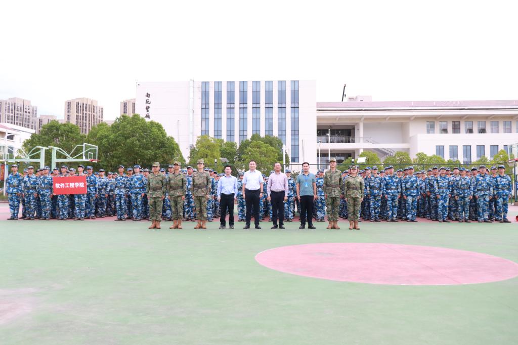 军训展风采,青春正当时。9月21日,软件工程学院党委书记徐志国、院长曾岳、党委副书记徐斌等来到南区足球场亲切慰问了学院承训教官、新生辅导员助理和全体新生。