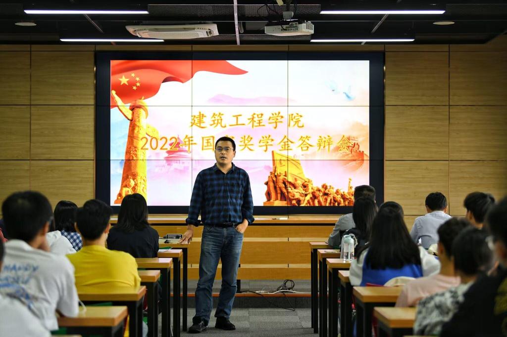 为确保国家奖学金评选工作公平、公开、公正地进行,建筑工程学院于9月28日上午在工科楼B513会议室举行了2022年国家奖学金答辩会。学院党委副书记张乐乐、年级辅导员、各年级班主任代担任评委,各年级学生骨干作为观众参加本次答辩会。会议由学院辅导员张胜男主持。根据疫情防控要求,本次答辩会采用了线上线下相结合的形式。