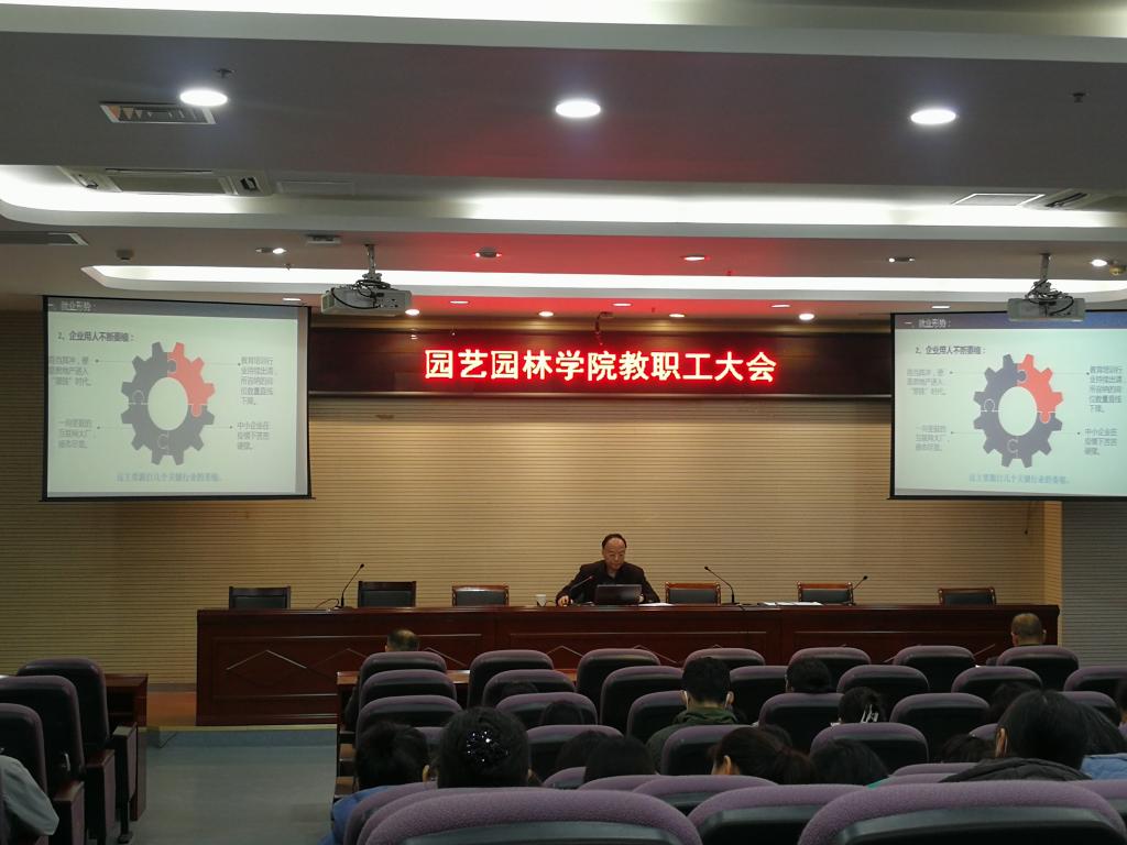 2022年11月30日下午,园艺园林学院在幕府校区图书馆报告厅召开全院就业工作大会。此次会上,特邀学校招生就业处闵光琛处长为学院全体教师进行了就业工作专题指导讲座。