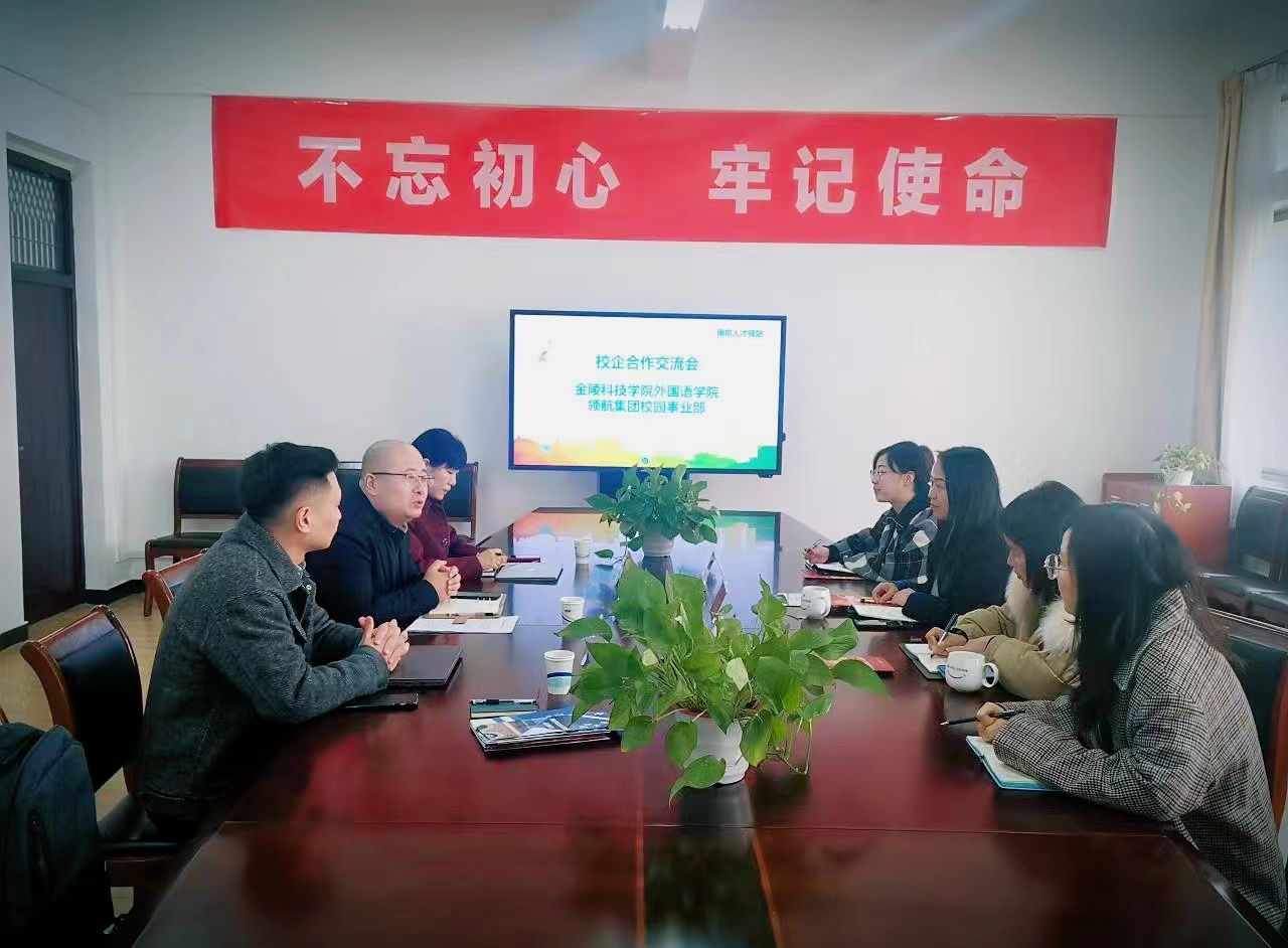 3月1日上午,外国语学院邀请江苏领航集团校园事业部总经理周建政、南京人才驿站运营经理陈雪琦、项目经理龚晨来校开展校企合作交流活动。校企双方在江宁校区8210会议室召开交流会,外国语学院党总支部书记李星、副院长李凤、学工办主任王奕和团总支部书记杨婷参加了会议。
