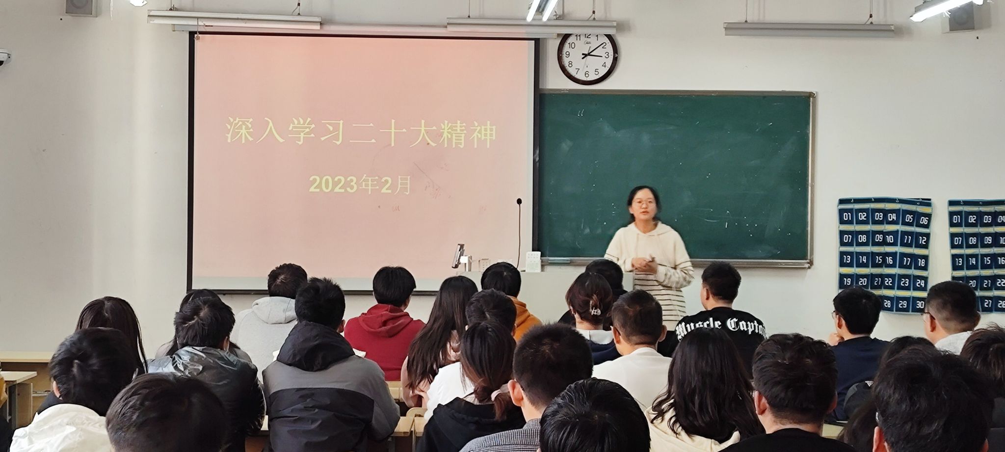 此次班会,辅导员、班主任精心准备,重点从学习贯彻党的二十大精神、加强班风学风建设、防范电信网络诈骗等方面展开。班会形式多样,同学积极参与,现场气氛活跃。同学们就二十大会议的学习心得展开了热烈讨论。老师也结合自身的学习和经历,与同学们分享践行党的二十大精神、抗疫成果以及立志成长为新时代好青年的思考和实践。同时围绕学生的成长困惑等问题提供有针对性的引导,激励同学们厚植家国情怀,涵养进取品格。