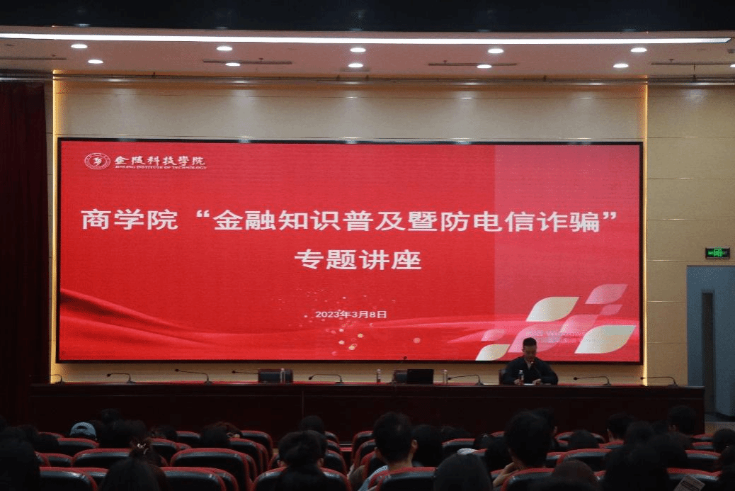 为贯彻落实《beat365正版唯一官网必一2023年防范电信网络诈骗工作实施方案》的精神,提升金融专业学生理论与实践相结合的能力,3月8日下午,商学院特邀请中金财富证券南京龙蟠中路营业部华春如经理、上海证券交易所左祥经理在科技楼报告厅举办“防范电信网络诈骗主题宣传教育月”系列活动之“金融专业知识普及暨防电信诈骗专题讲座”。商学院200余名学生参加,讲座由辅导员张才主持。