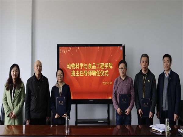 为了进一步加强班主任队伍建设,提升教育管理服务学生的工作水平和实效,动科学院于2023年3月29日下午两点在农科楼南304室举行了班主任导师聘任仪式。学院党委书记王正昱,党委副书记黄淑婧、副院长蒋加进出席会议、全体老师参加会议。