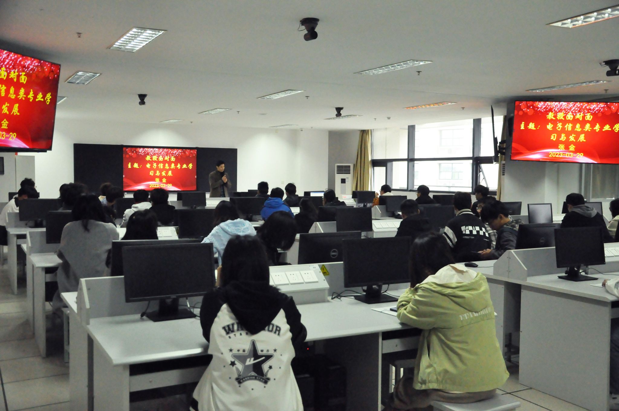 3月29日,电子信息工程学院在科技楼313举办了“教授面对面”活动。电子信息工程系副主任张金副教授、辅导员殷燕出席了活动,22级信息工程和信息工程(专转本)学生参加了活动。