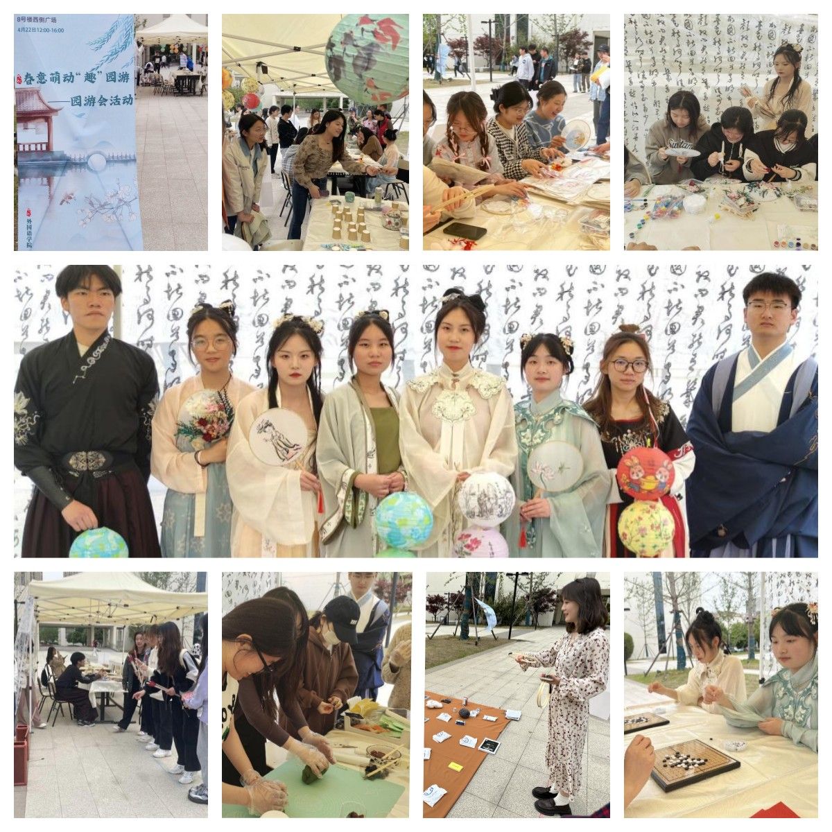 繁花似锦,绿荫如海,花香熏陶着四月的大地。为弘扬中华优秀传统文化,增进师生间的交流,促进学生健康成长,4月22日,外国语学院在南区立德树人小广场举办了“春意萌动趣园游”活动,英语专业教师、往届校友和在校生约200人参加,师生同游,和乐融融。
