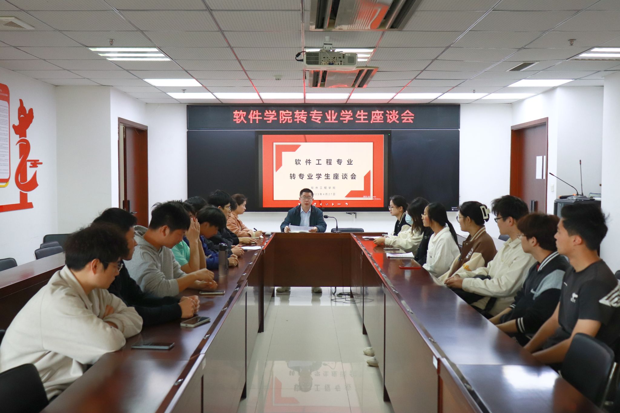 为加强软件工程专业建设,提升就业质量、针对专业认证和教学评估要求抓好学风建设,近日,软件工程学院分别召开了各年级在校生、转专业、退伍等学生代表座谈会,了解学生学习生活情况,倾听他们的心声和诉求。院党委副书记徐斌、副院长胡勇、各系主任、辅导员和学生代表参加了此次座谈会。