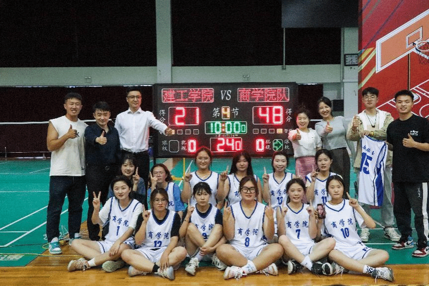 本次比赛历经两个月的淘汰赛,商学院女子篮球队共有13名运动员,男子篮球队共有14名运动员。女篮冠军赛中,起初我院比分稍显落后,但运动员们不断调整自己的心态,在主教练员的带领下,一鼓作气,拼尽全力,随着一记记妙传,一趟趟过人,一次次拦截,一个个进球,吹响反攻的号角,不断与对手缩小比分差距。话筒里的“商院14号,三分球有效”无不牵动着每一位观众的心,现场爆发出雷鸣般的掌声,逐渐我院成功将比分反超,选手们士气高涨,运用团队配合不断进球,拉开差距,场下鼓声震天,局势悄然逆转,我院不断得分,最终以48:21获得本次“金科杯”篮球比赛女子组冠军!