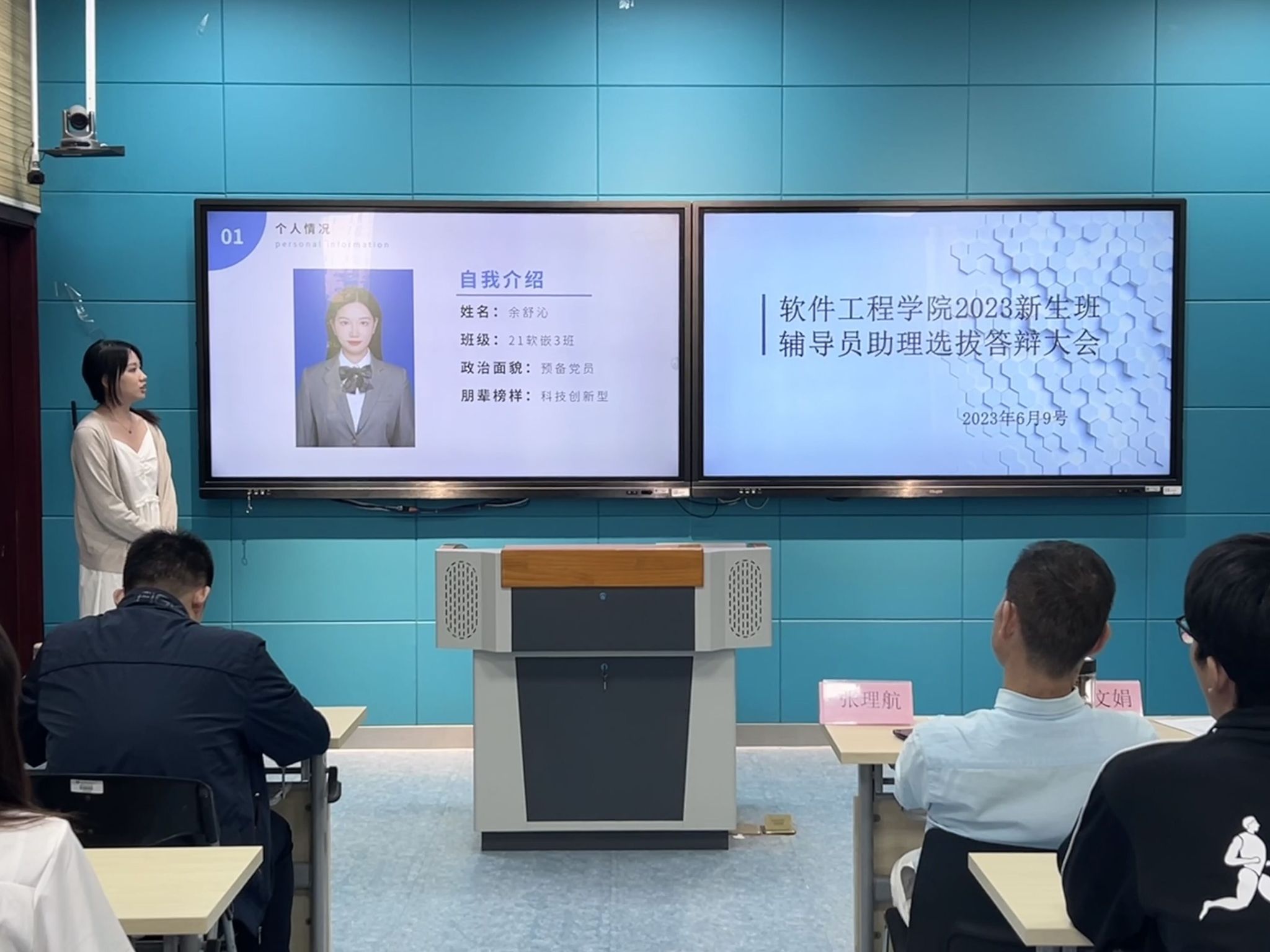 本次答辩共有17名答辩选手参加,答辩会主要分为自我介绍、岗位职责、未来展望等环节,旨在全面展示辅导员助理的工作能力和综合素质。在答辩过程中,答辩选手们表现出了较高的自信度和专业素养,每位选手都能够清楚的了解到自己的工作内容以及工作职责。从选手精彩的答辩可以看出每位选手都将能出色地担负起辅导员助理的角色,激烈的角逐后,各位评委进行了打分。