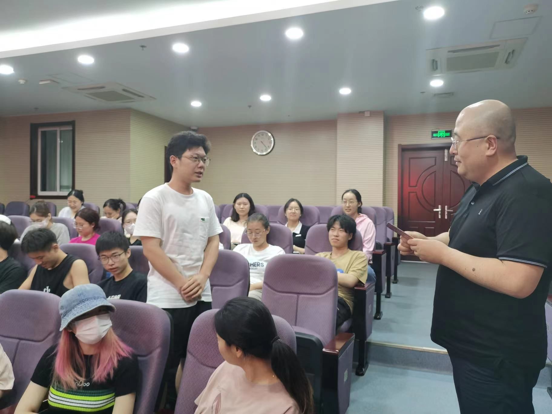 周建政老师以“由简即面,智赢未来”为主题,从智行千里(领悟努力与选择的意义)、智造事业(在爱干的领域努力玩和智慧求职)、洞见HR招聘思维(简历制作及面试攻略)等三个方面分享了求职方法与经验,启发学生学会探寻发展机遇,助力实现高质量就业。周老师风趣幽默的讲授风格赢得了在场学生的掌声。随后,为了帮助同学们更好掌握面试技巧,周老师通过模拟面试现场互动,生动讲解了面试避坑的策略和面试心法,提高了同学们的面试能力。