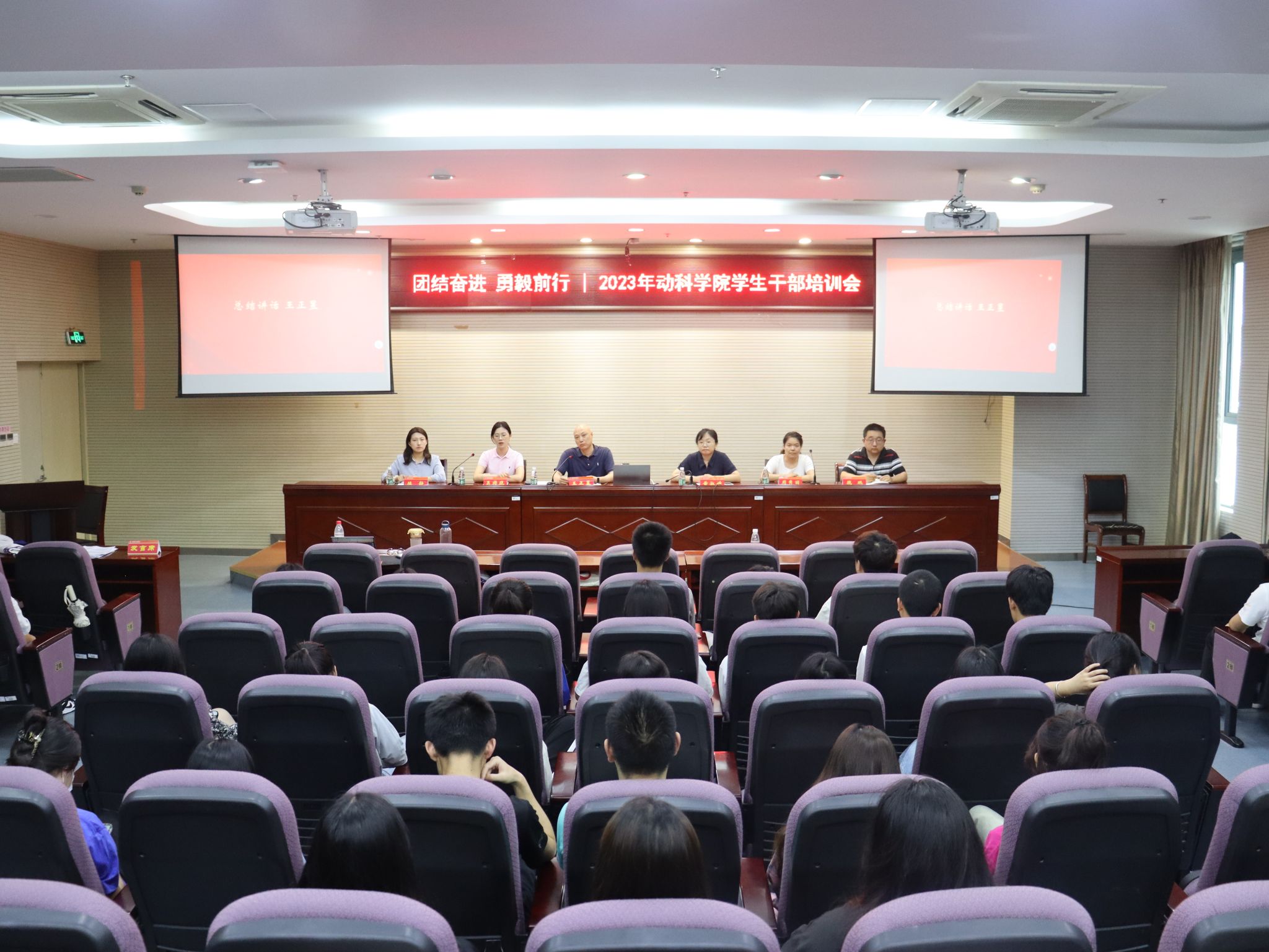 为增强学生骨干责任意识与全局意识,提高其组织管理能力,加强学生骨干队伍的凝聚力、战斗力, 2023年7月2日,动科学院在图教楼报告厅开展了学生骨干培训会,出席本次会议的是学院党委书记王正昱、党委副书记黄淑婧、学工办全体老师,参加本次培训的是动科学院团总支、学生会、社团联合会学生骨干、2022级各班级班委。会议由吴旖旎主持。