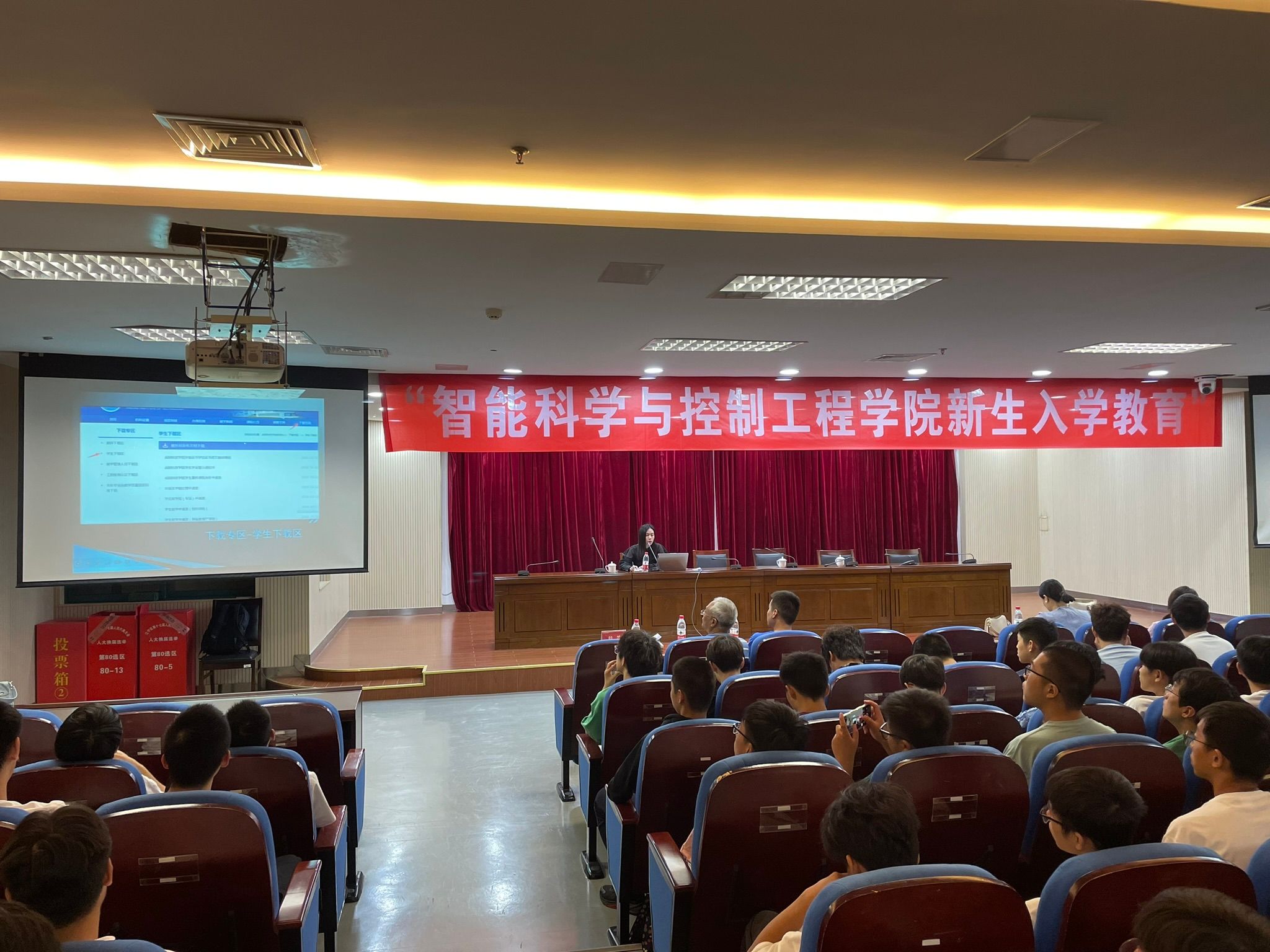 金秋九月伊始,智控学院喜迎290余位本科新生。为引导2023级新生尽快熟悉校园环境,尽早适应大学生活,更好融入金科发展,智控学院于2023年9月13日下午在图书馆第二报告厅举办了2023级新生入学教育大会,智控学院党总支部书记戴典芬、院长杨忠、副院长徐楠、实验中心主任薛世弟、教务办副主任顾娟及全体辅导员、新生班主任、23级新生参加了本次入学教育,本次入学教育由学工办主任段蕊主持。