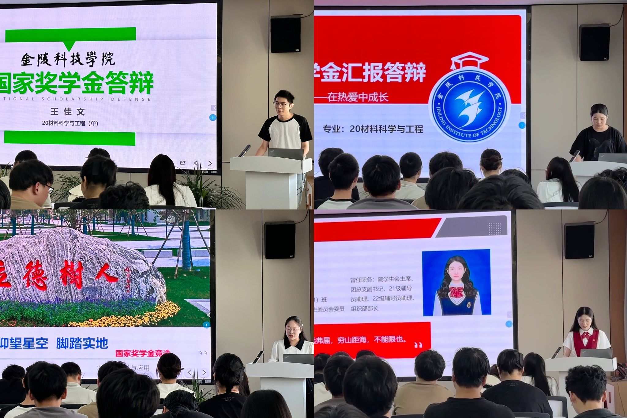 答辩现场,11位候选人准备充分、自信昂扬,依次进行了精彩的汇报。从思想品德、学业成绩、工作任职、学术研究、科技创新和社会实践等方面入手,向评委及观众们展示了自己大学期间的成长、收获,用一张张奖状、一次次实践彰显着青春的风采。陈智慧副书记对同学们的汇报表示了充分的肯定,希望在场观摩的低年级学生能从中汲取榜样力量,找差距、定目标、细规划,在学习他人的过程中成长为更好的自己。