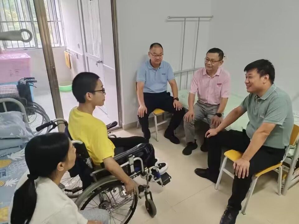 9月28日,在传统中秋佳节来临之际,计算机工程学院党委书记陈冠亚、院长田祥宏和党委副书记张昊一行,赴北区07栋看望今年入学的23级残疾新生周伟,为他送上节日的祝福和关怀。