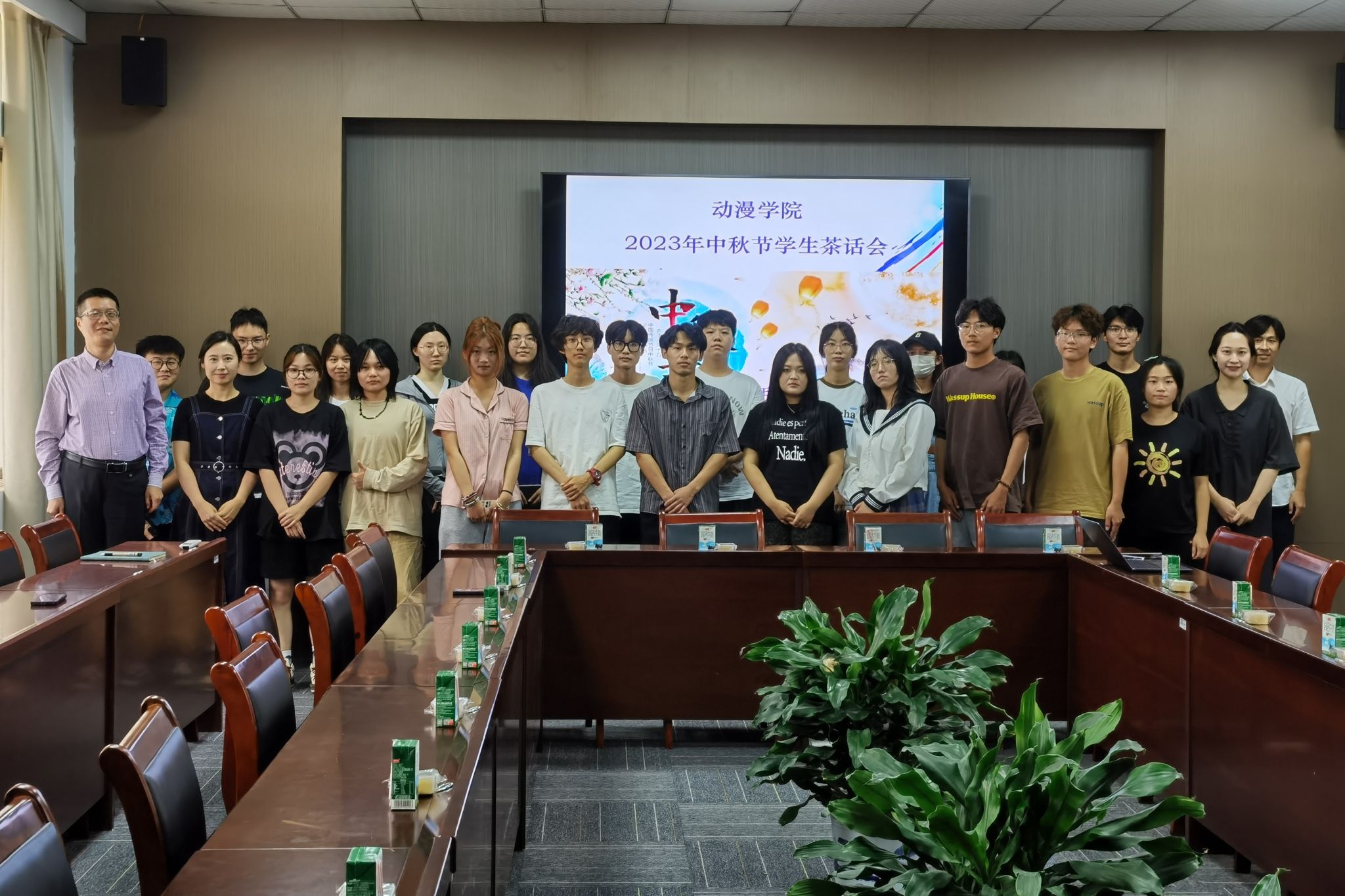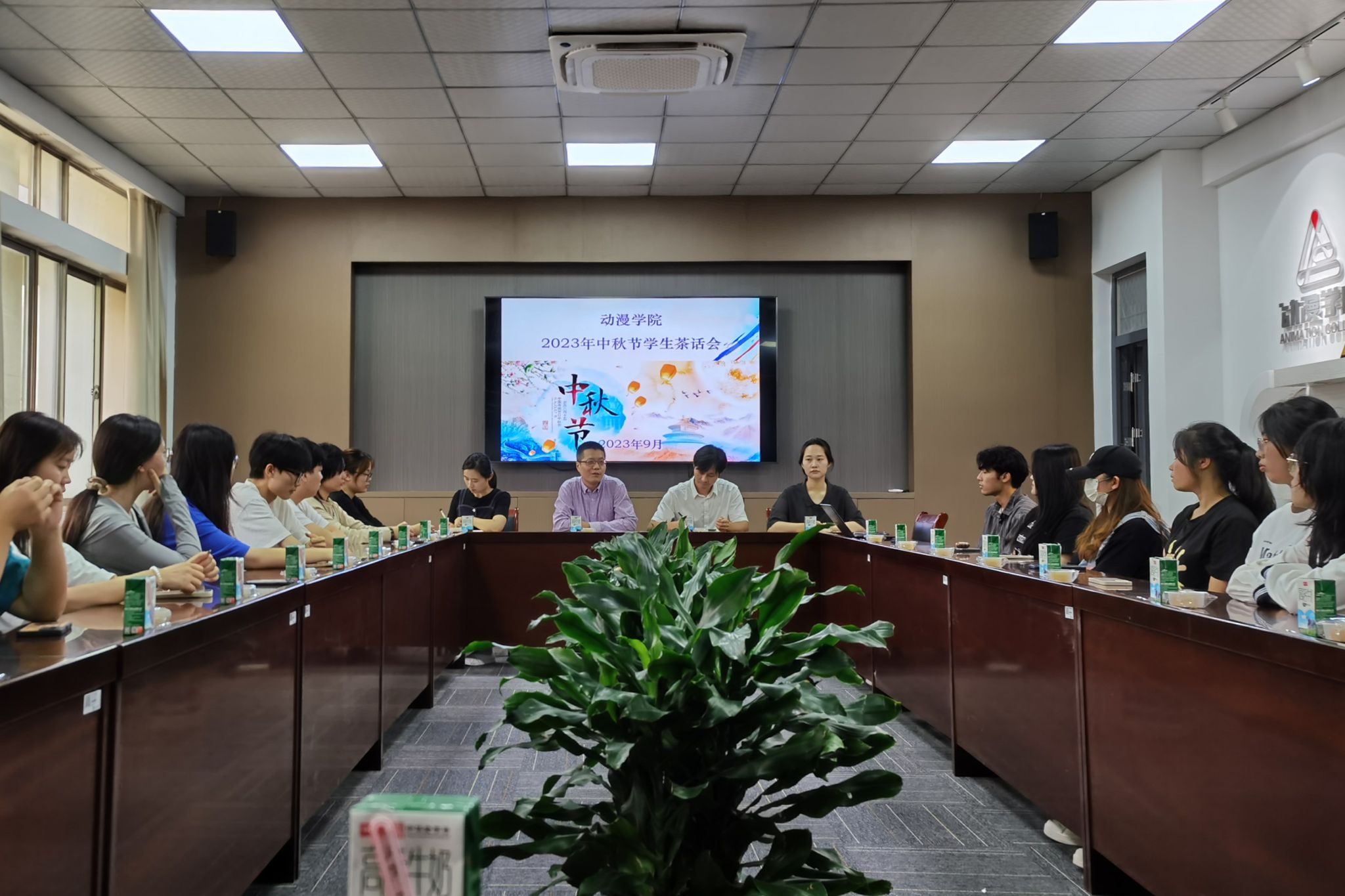 9月28日,动漫学院在7406会议室,举办了2023年中秋节学生茶话会。学院党总支部副书记副院长匡才远,全体辅导员,家庭经济困难学生、各年级学生代表及2023级新生代表参加了活动。