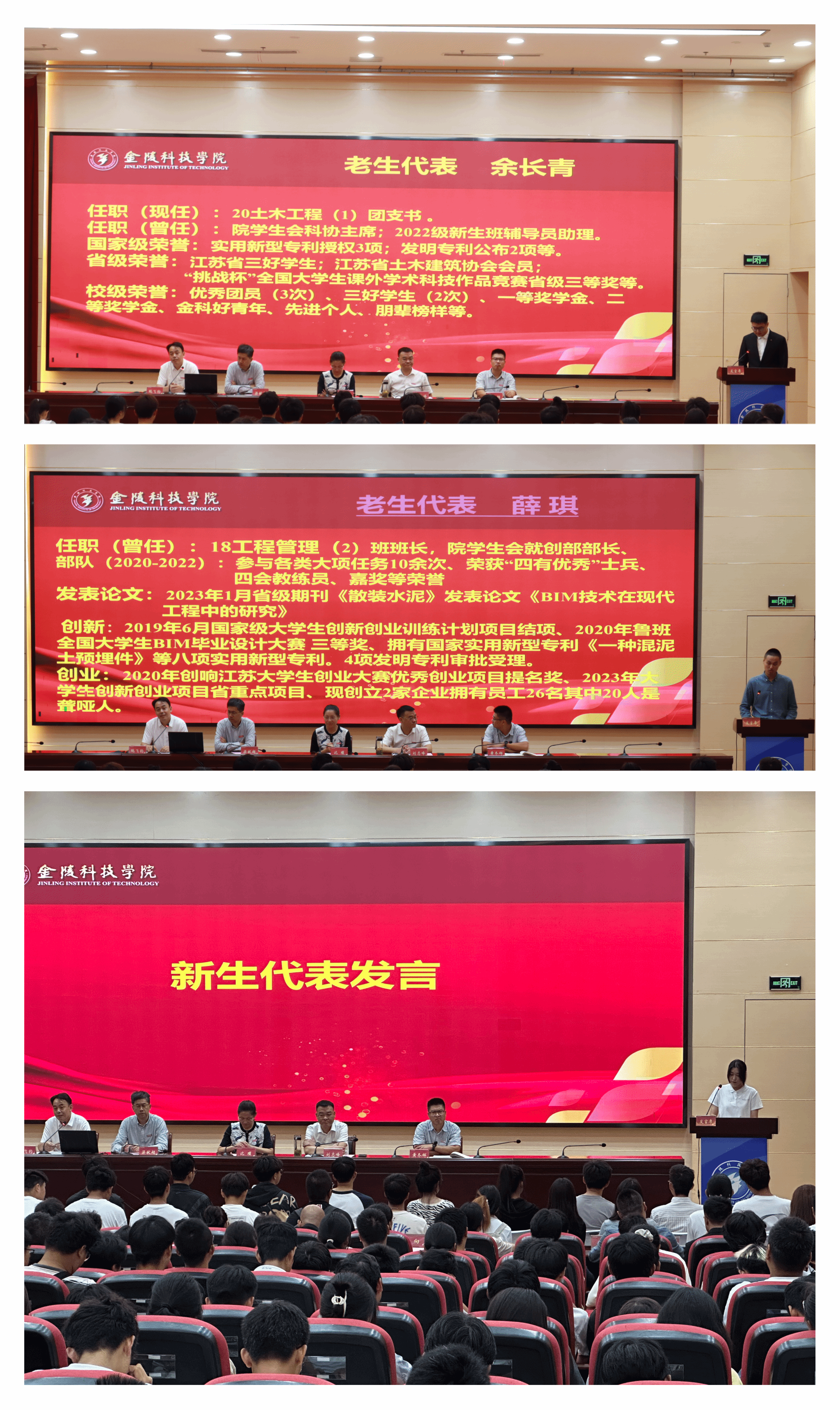 会上,教师代表龚亚西博士、在校生代表余长青、薛琪,新生代表邓潘睿分别发言,优秀校友代表2015届校友杨家富、2022届校友张正辰、2023届校友王霖、张雪柔分别通过视频送来祝福。