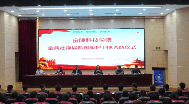 为充分发挥学生自我教育、自主管理、自我服务的主体作用,校党委人民武装部于10月27日下午在江宁校区科技楼报告厅举行金兵社换届大会暨国旗护卫队入队仪式。校党委人民武装部副部长沐阳、校党委人民武装部国防教育科全体人员、金兵社、校国旗护卫队全体同学参加。会议由国防教育科李媛媛老师主持。