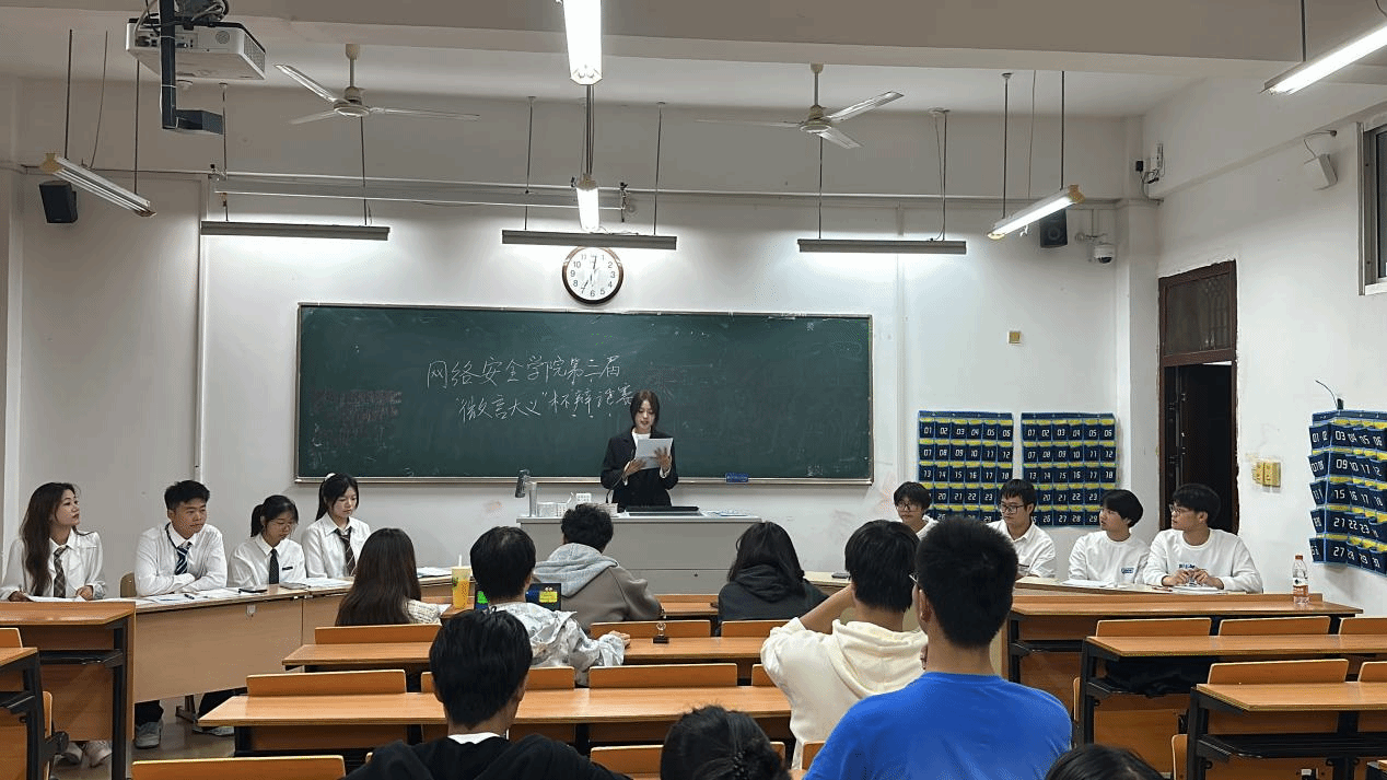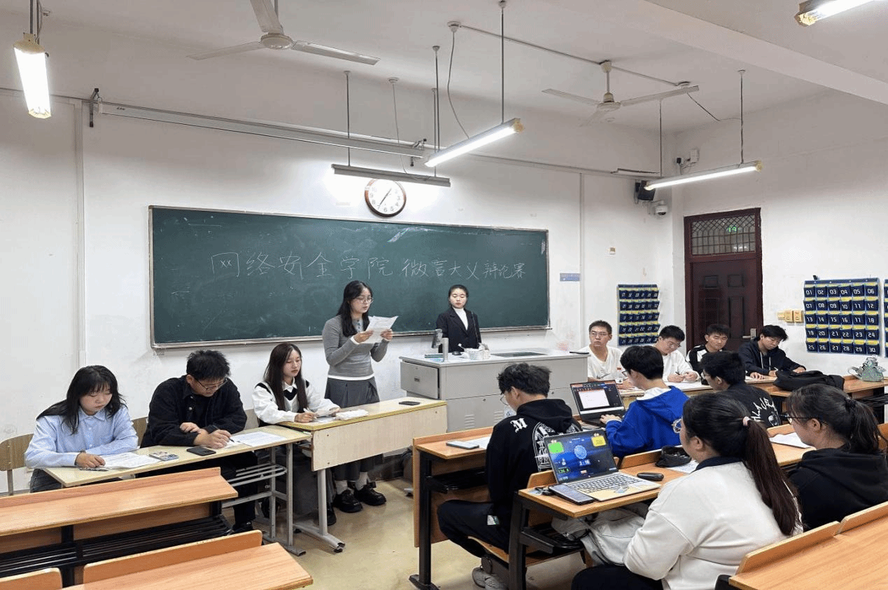 网络安全学院于11月5日在1202、1204、1206举行了网络安全学院第二届“微言大义”杯辩论赛。本次辩论赛旨在提高学生的辩论能力和思辨能力,吸引了来自学院各个班级的优秀选手参与。