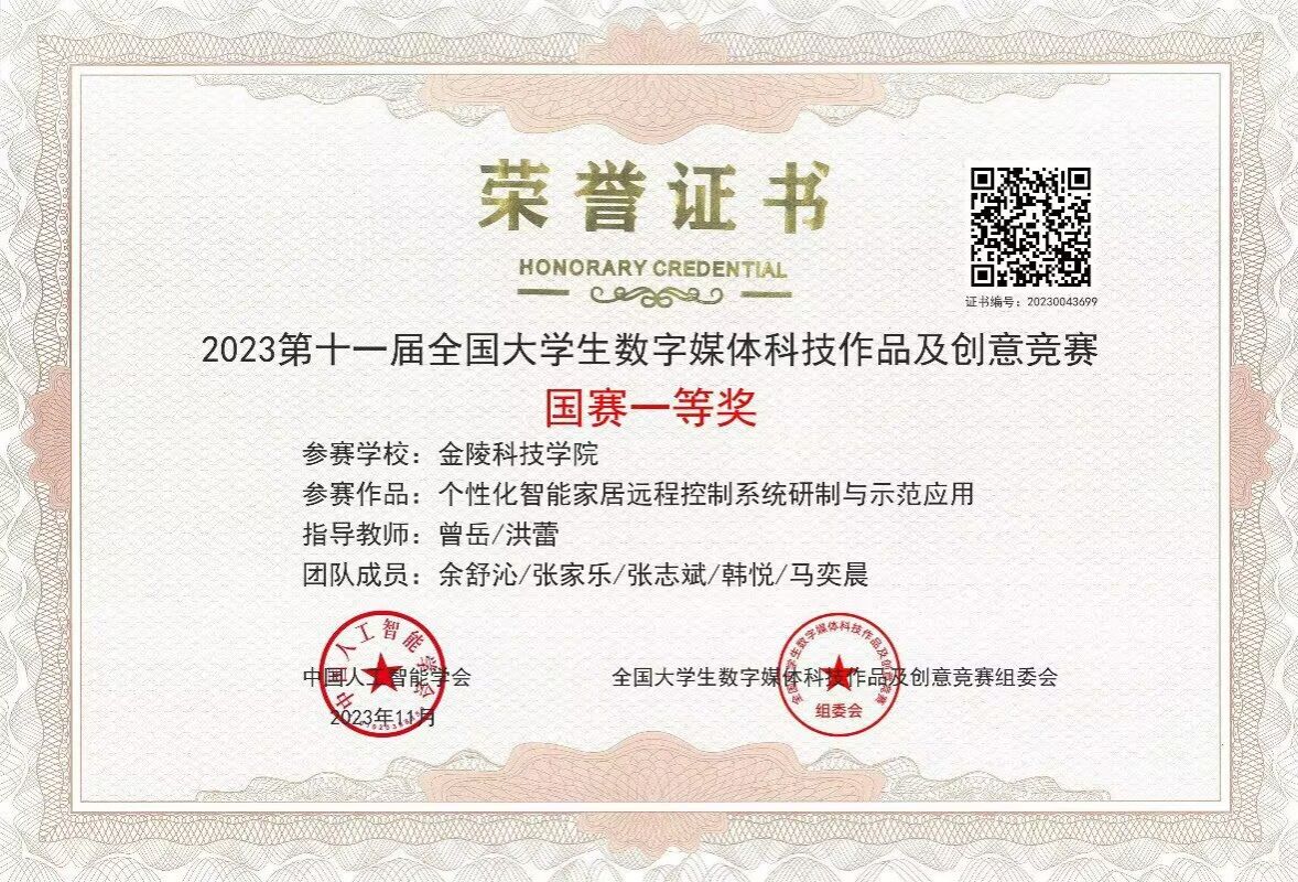 beat365正版唯一官网必一软件工程学院《个性化智能家居远程控制系统研制与示范应用》和《元素瓶软件代码智能审查系统》两个作品,在7万件作品中脱颖而出,荣获国赛一等奖。本次参赛团队由曾岳教授、洪蕾教授和董如婵副教授以及软件工程学院和计算机工程学院余舒沁、夏金伟、施瑞昭、苏宁、张志斌等同学组成,经过近一年的打磨,凭借路演环节中的出色发挥,体现了专业优势与独特创意,成功在智能产品设计赛道中受到评审专家的肯定。本次比赛提升了专业教师的教学创新水平,提高了学生的创新实践能力和团队合作意识,推动了学院产教融合高质量成果建设。(撰写人:洪蕾 审核人:徐志国)