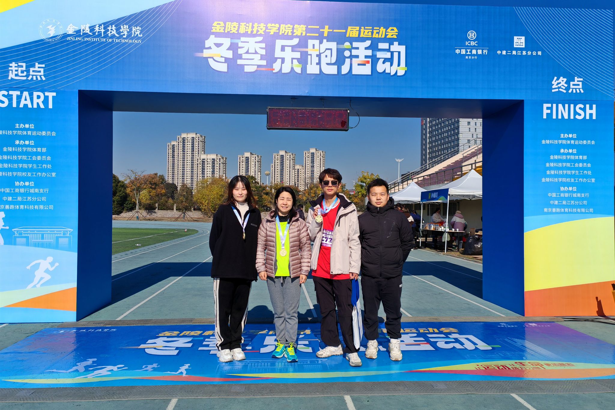 在学校第二十一届运动会“冬季乐跑”活动上,2021届三位校友冯园缘、王树军、崔浩积极参加校友乐跑团,以饱满的爱校情感与健康的身体状态,展现快乐的返校心境和进取的体育精神。乐跑活动中,赵宁书记、王贤波院长及学院教师运动员们与三位校友们热情合影,学弟学妹志愿者们则为三位校友运动员做好志愿服务工作,促进了学院师生和校友之间的情谊交流,增强了大家的集体荣誉感。