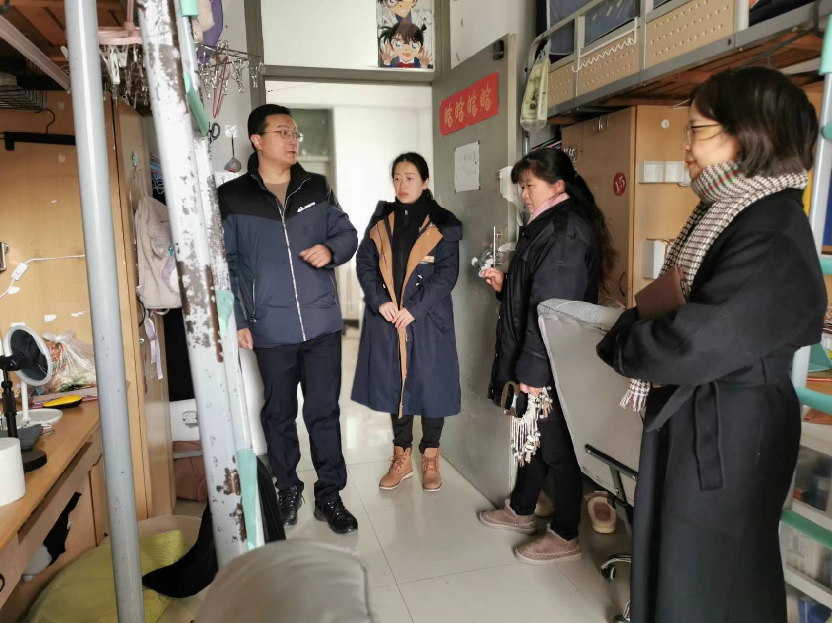 2024年2月26日,国教院党总支部书记刘琳、院长戴维和副院长王耘带领教学和学工团队成员,深入学生课堂和宿舍检查开学情况。