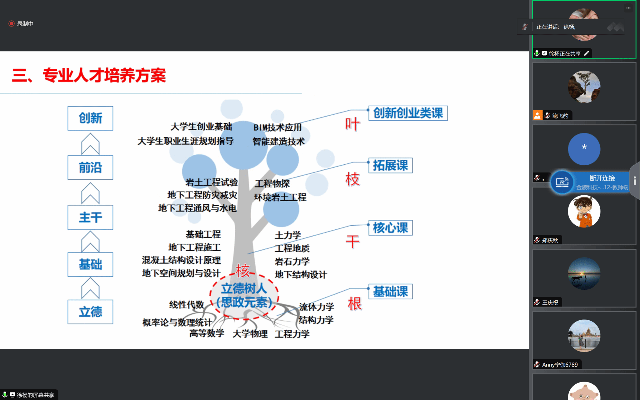 为进一步发挥优秀校友的榜样作用,加深在校学子对后疫情时代下求职、考研和考公等现实情况的认识和了解,引导同学们理性思考和科学规划未来发展,推动实现更高质量就业,3月9日上午,建筑工程学院城市地下空间工程系邀请了2016届毕业生高宁伽、2019届毕业生王庆祝、2023届毕业生黄亚楠、2009届毕业生姚昌海等4位优秀校友以在线会议的方式进行主题为“校友领航,启迪未来”的经验分享会,我院党委副书记郑庆秋、副院长黄冬辉、地下系主任徐杨和地下系全体师生参加了本次分享会,本次会议由孙雪老师主持。(撰稿人:鲍飞豹 审稿人:郑庆秋)