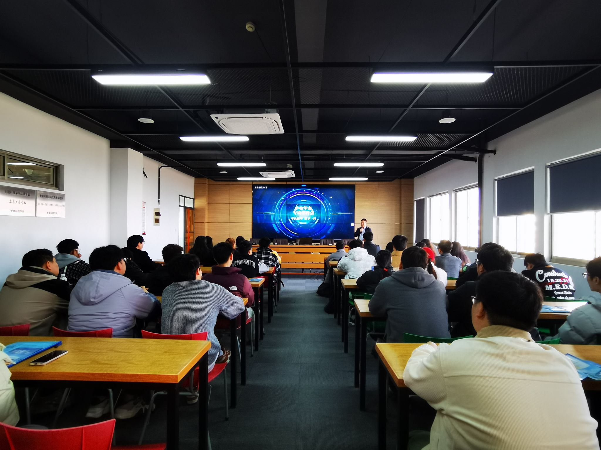 刘泽华助理介绍了企业发展历程、企业文化、科研成果、业务服务等情况,希望通过多种形式与学院深化合作,实现校企双赢。会后,刘助理进行了招聘宣讲会,介绍了企业基本情况、业务范围与发展、招聘岗位与要求、员工福利与发展等,分享了简历制作以及面试需要注意的事项,宣讲会结束后立即进行简历筛选并进行面试,最终有3位同学获得企业offer。