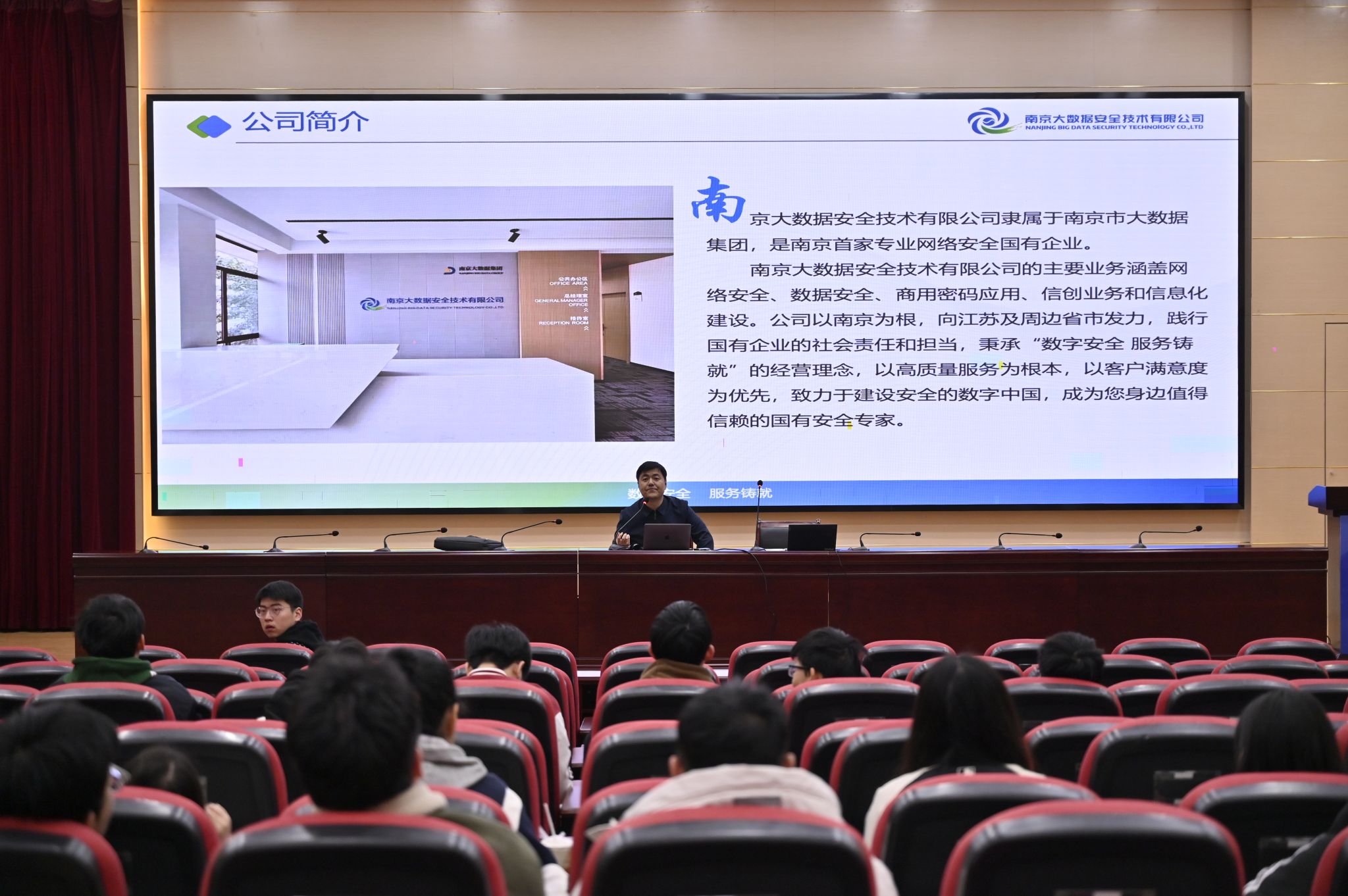 会议伊始,毕业班辅导员马晓辉详细介绍了2024届毕业生就业流程,对就业政策、就业信息、就业推荐表和就业协议书的签订等进行了讲解,并对就业形势、就业工作重难点进行了分析。会后,两家企业绿盟科技集团股份有限公司和南京大数据安全技术有限公司来现场进行专场招聘会,与毕业生进行密切交流。