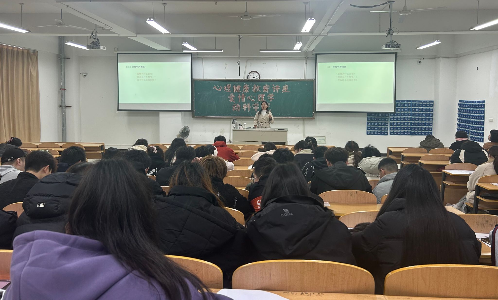 为促进当代大学生对爱情的思考,了解爱情的真谛,深入开展“3.20心理健康教育周”活动,3月27日下午,动科学院特邀王彩英教授在图教楼B305开展爱情心理学讲座。此次讲座有辅导员周秀丽主持,各班级班委及学生干部参加了本次讲座。