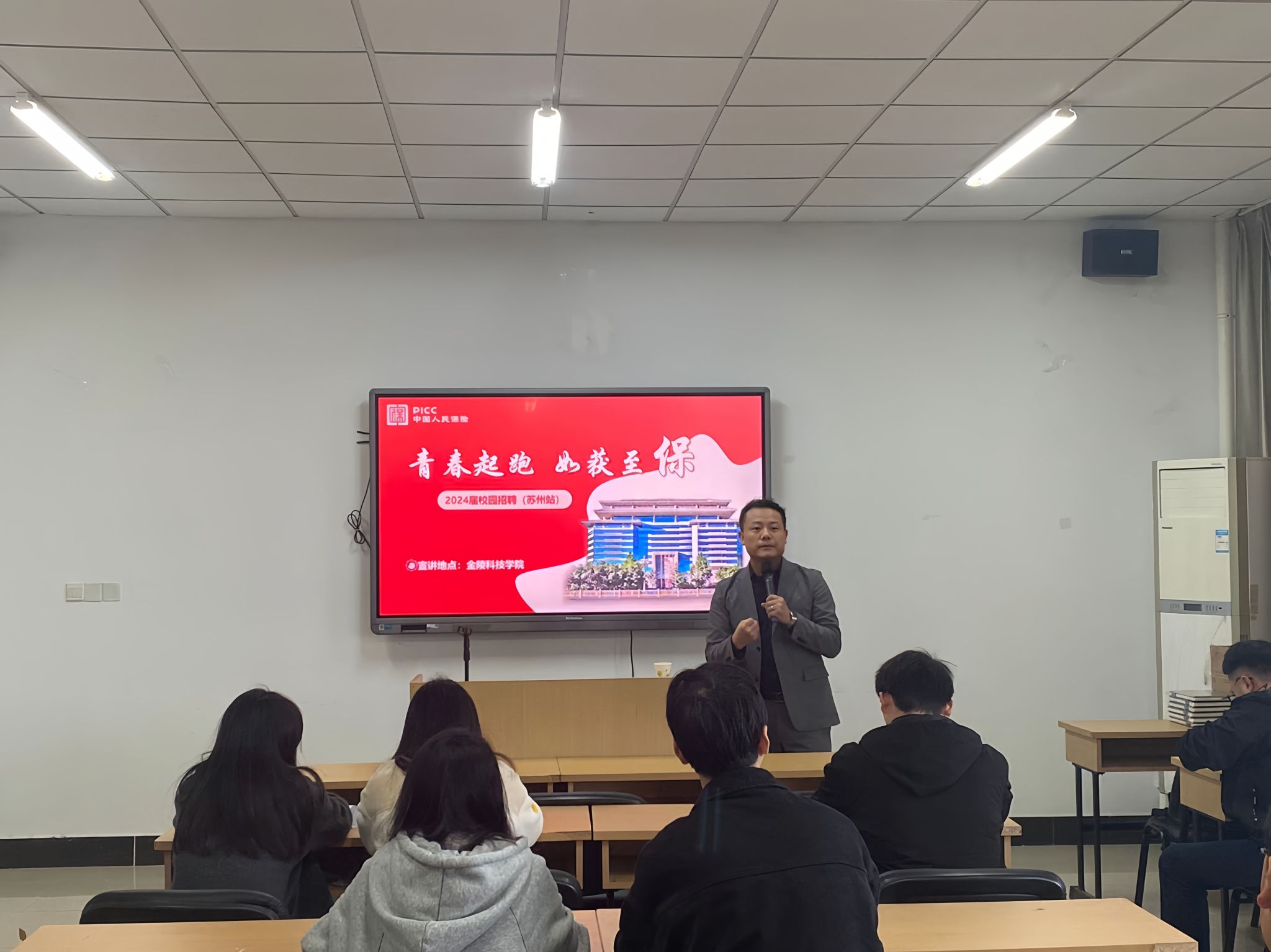 为了更好的助力2024届毕业生就业,3月28日下午,机电工程学院在工科楼C504举办中国人民财产保险股份有限公司苏州分公司校园专场招聘活动。公司人力资源部主管宋晓刚一行三人、学院党委副书记张蓉、毕业班辅导员、30余名2024届毕业生参加了招聘活动。