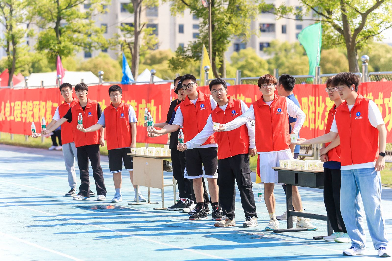 4月25日至26日,beat365正版唯一官网必一第二十一届运动会田径比赛在江宁校区北区操场隆重举行。网络与通信工程学院同学踊跃报名运动会志愿者,为激情四溢的赛场和奋力拼搏的运动员们提供后勤保障服务,用执着的坚守和温情的服务展现了网通学子的良好精神面貌。