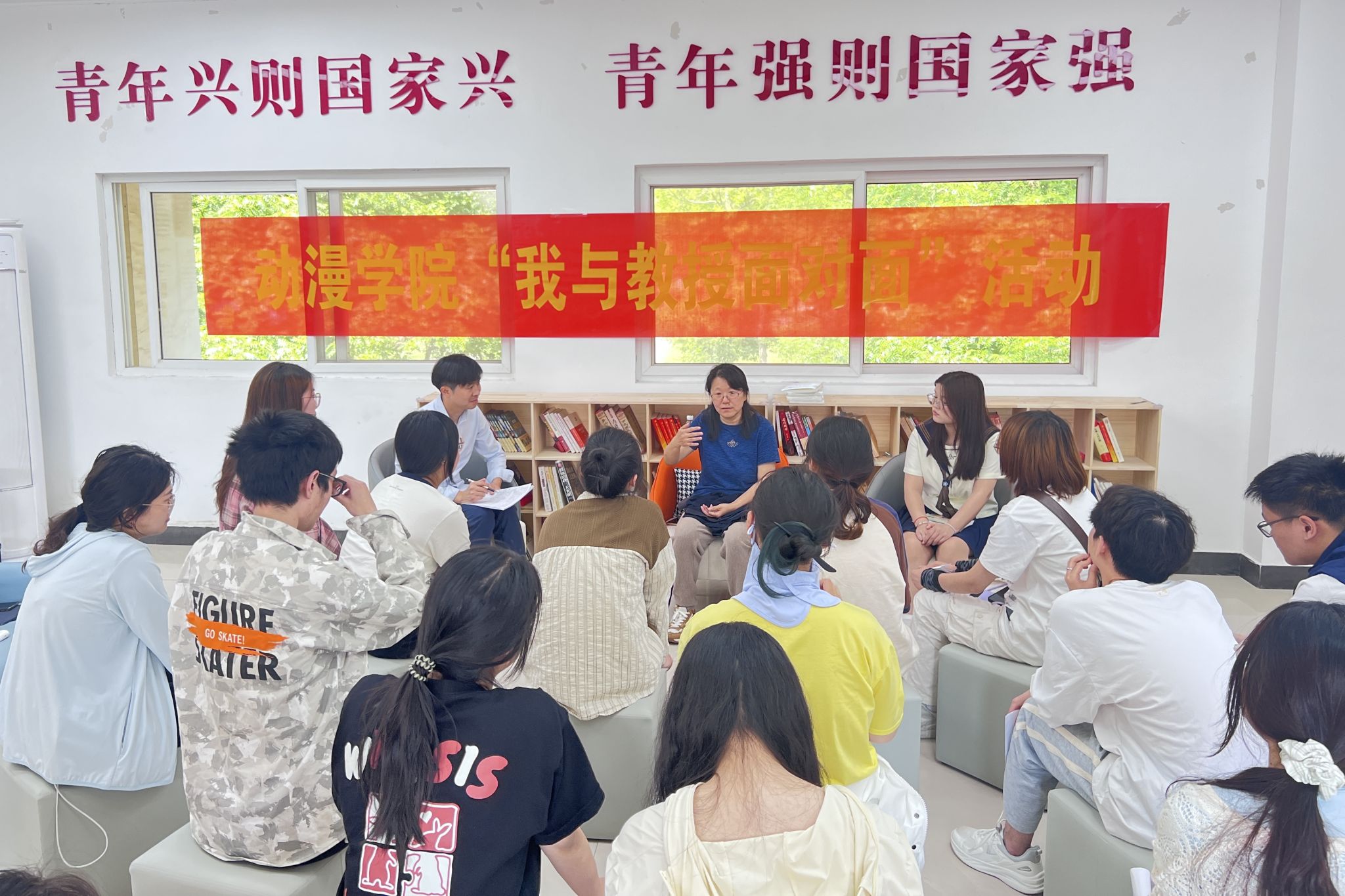5月8日下午,动漫学院在南区08栋“一站式”学生社区举办了2023-2024-2学期第一场“我与教授面对面”活动。本次活动邀请了动漫学院动画系黄苏瑾副教授与同学们进行分享交流。动漫学院动画专业各年级学生代表、院学生会学习部成员、辅导员聂钰石老师参加了活动。