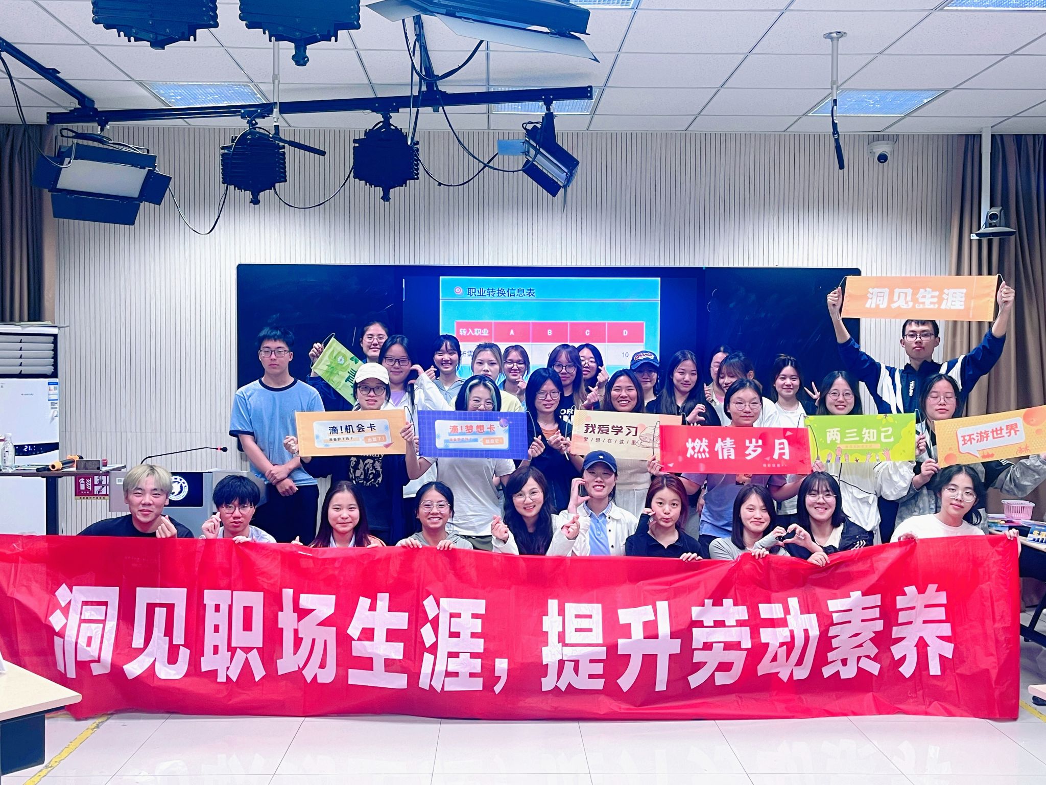 为通过模拟生涯规划,引导学生们深入理解劳动教育的重要性,以及如何在人生道路上做出明智的选择,5月15日下午,外国语学院在江宁校区博学楼8305教室精心组织了一场别开生面的洞见职场生涯游戏暨大学生劳动教育课程。2023级辅导员杨婷作为引导讲师,带领30名大一新生参加了本次活动。