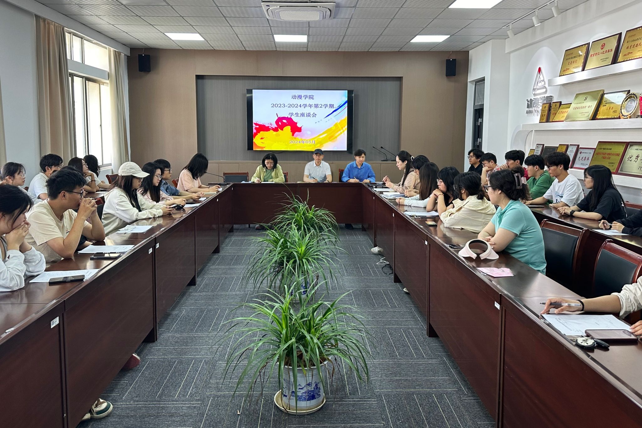 为着力建设优良学风,5月16日,动漫学院在7406会议室召开了2023-2024学年第2学期学生座谈会。动漫学院副院长王柯,学院教学管理办公室副主任夏鷃晏老师,全体辅导员,各班班长、学习委员参加了本次座谈会。