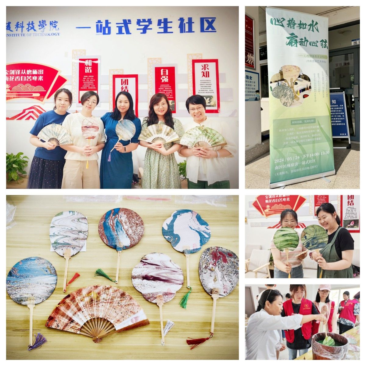 5月24日下午,外国语学院在南区01栋学生一站式社区服务中心举办了一场别开生面的心理健康教育活动——水拓团扇。此次活动旨在通过艺术创作的形式,帮助师生们缓解压力,提升心理健康水平,增进师生之间的交流与互动。
