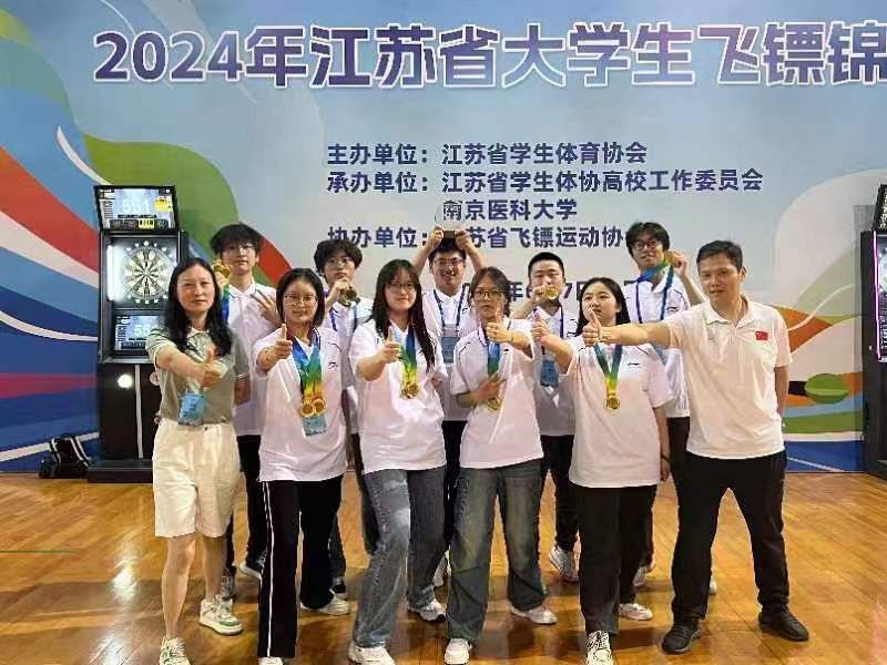 6月7日至9日,2024年江苏省大学生飞镖锦标赛在南京医科大学举行,来自全省41所高校的近500名运动员、教练员、裁判员参与比赛。beat365飞镖队共9名队员参加了本科组(甲组)比赛。
