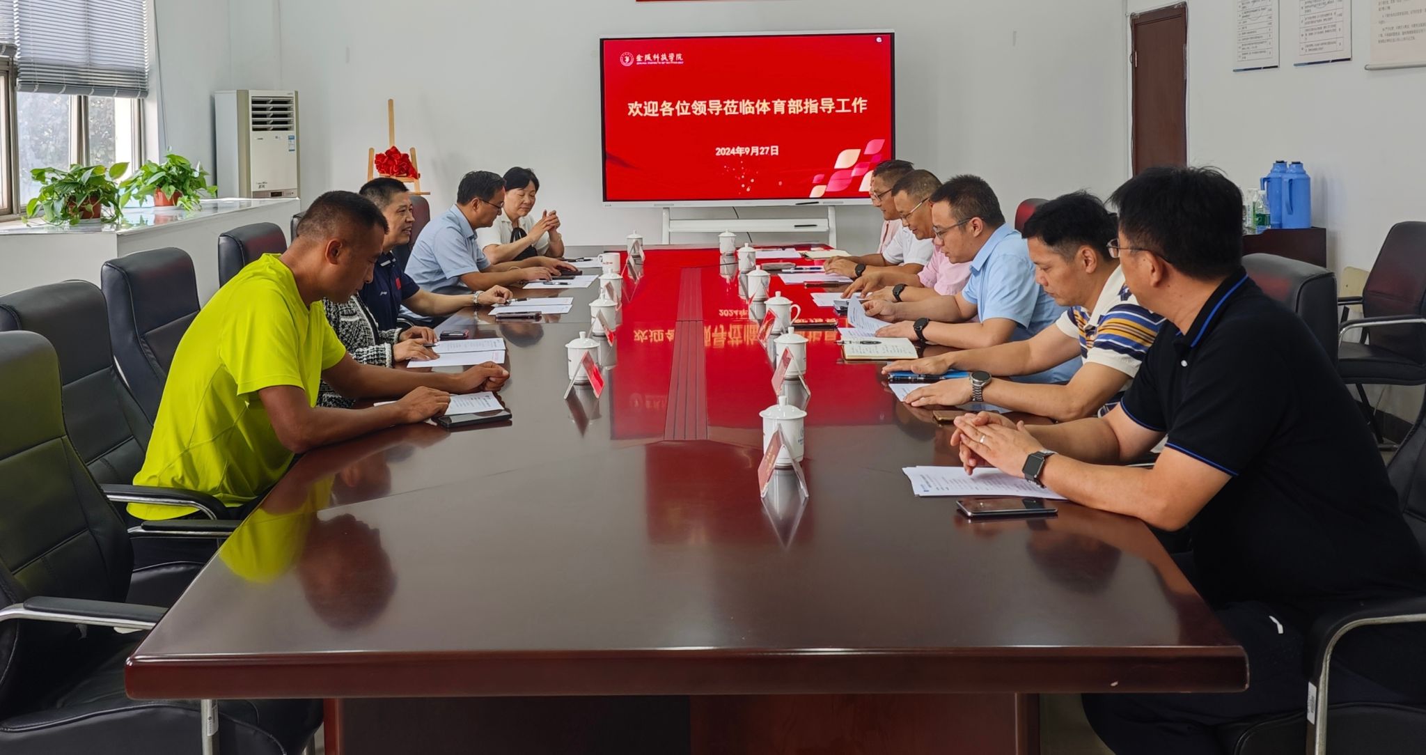9月27日下午,南京市教育局体卫处处长叶勇、江苏省体育局冬季项目管理中心主任蔡伟、南京晓庄学院体育学院副院长周大亮、南京市冰雪运动协会秘书长孙萍、南京市冰雪运动协会副秘书长姚亚敏来校参与beat365正版唯一官网必一体育工作交流研讨。教务处处长田祥宏、体育部副主任沈辉、体育部直属党支部书记周敏、江苏省冰雪文化研究中心主任吴畏等人参加了此次会议。会议由周敏主持。