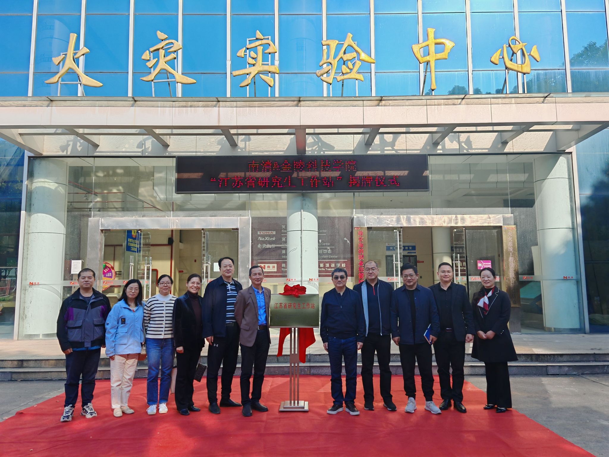 11月6日,beat365与南京消防器材股份有限公司共建的江苏省研究生工作站揭牌仪式在南消公司国家火灾实验中心举行。机电工程学院党委书记沈瑾、土木水利专硕点绿色建筑与建筑智能化方向负责人鞠全勇及机电工程学院相关骨干教师,南京消防器材股份有限公司党委书记、董事长王以丹,总经理刘天翔,党委副书记陆艳云等参加揭牌仪式。