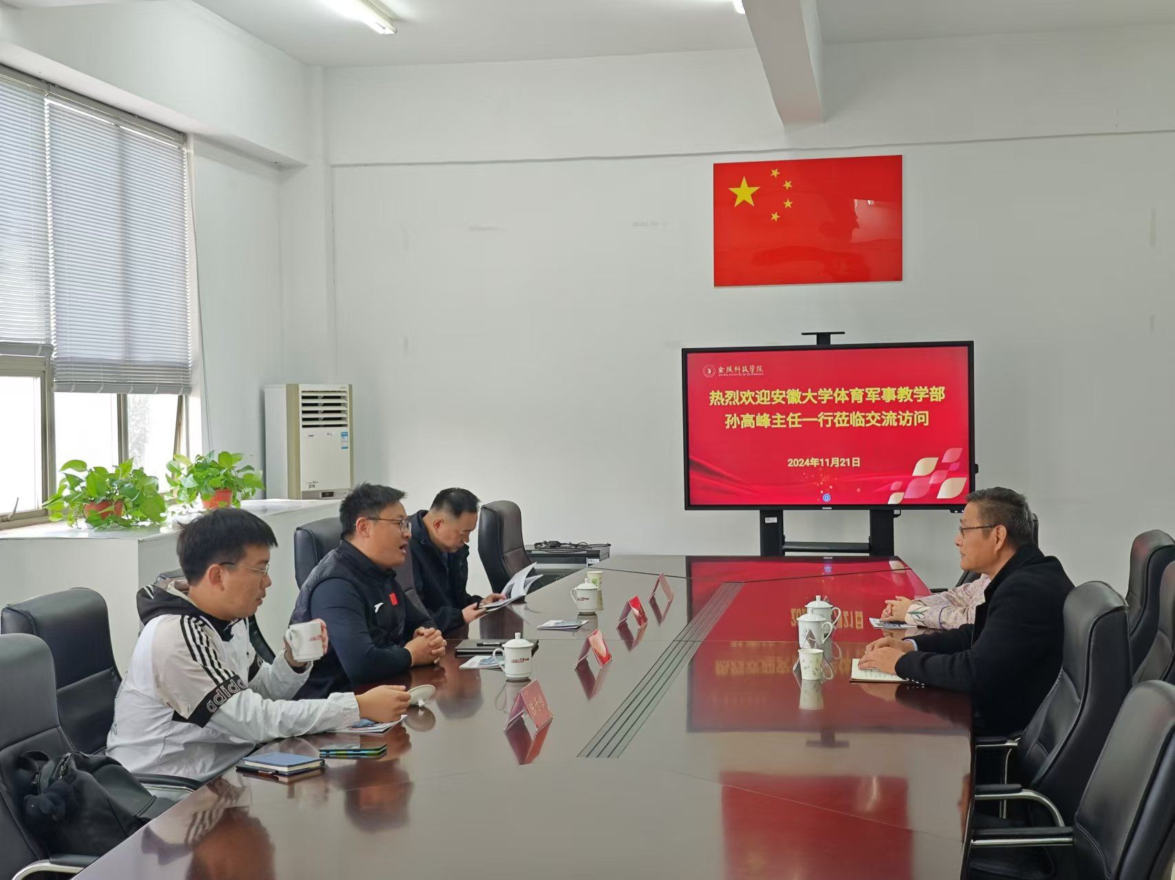 11月21日下午,安徽大学体育军事教学部主任孙高峰带领团队来beat365进行交流访问,beat365体育部副主任沈辉热情接待了孙高峰一行。
