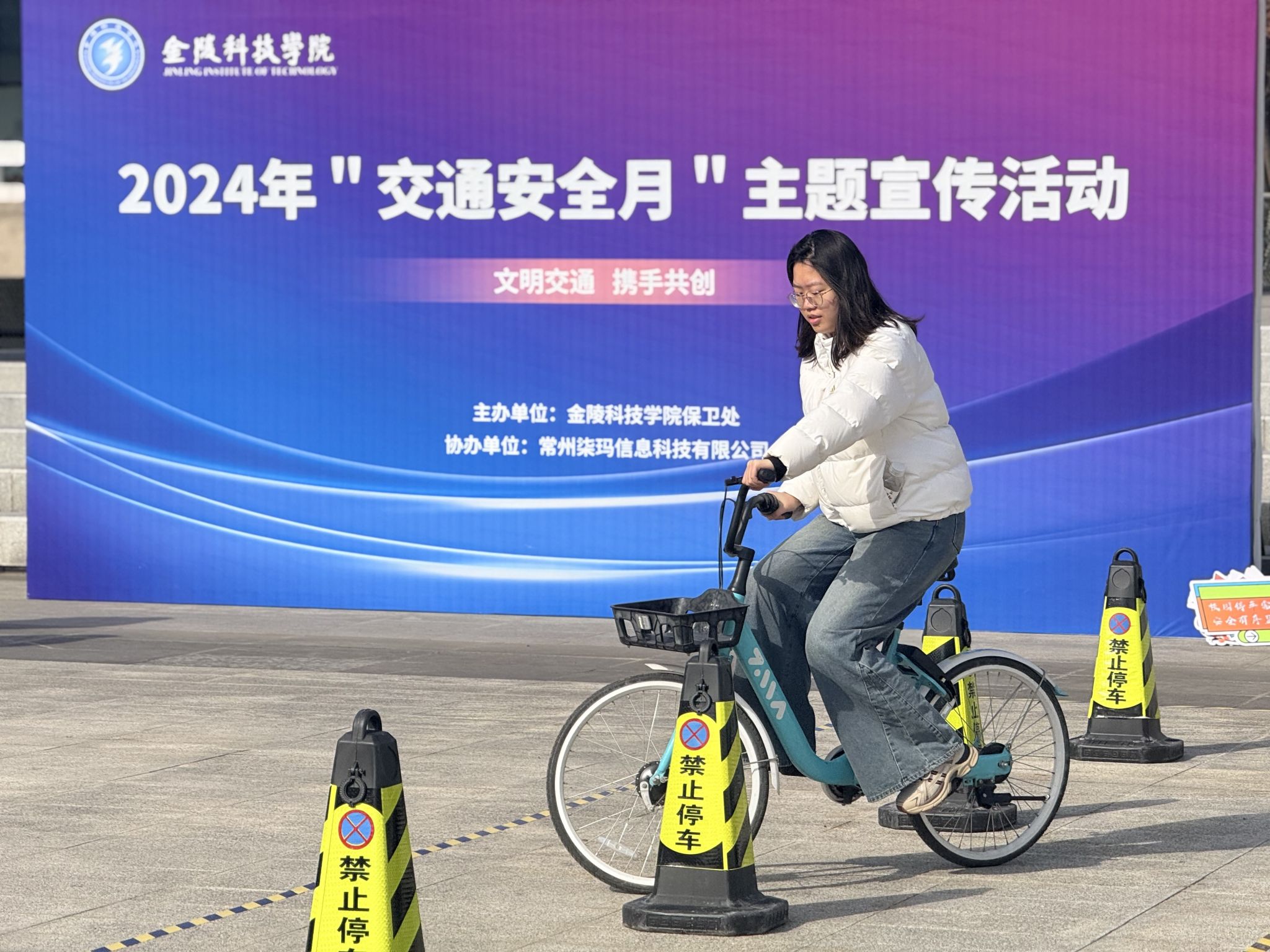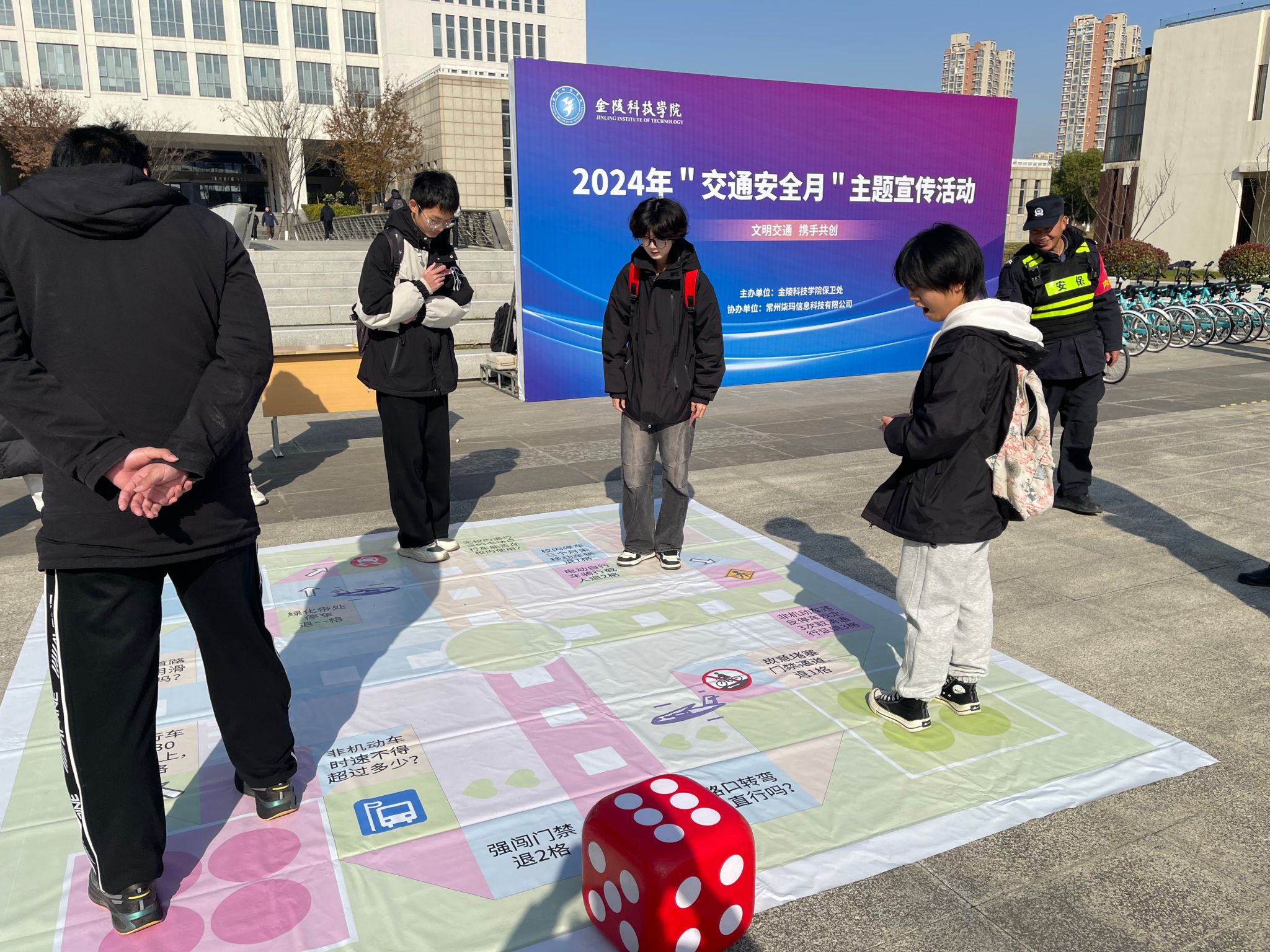 活动现场秩序井然,交通安全志愿者各司其职,认真指挥,确保了活动的安全顺利进行。“交通知识问答”环节激发了师生们的学习热情,现场氛围热烈,高潮迭起;“自行车障碍骑行”项目对参赛者的骑行技巧与临场应变能力提出了考验,参赛者们身手矫健,在赛道间自如穿梭,尽显当代青年的蓬勃朝气与无限活力;“交通飞行棋”以其寓教于乐的方式,巧妙地将交通规则融入游戏之中,让参与者在欢声笑语中深化了对交通安全知识的理解和记忆。