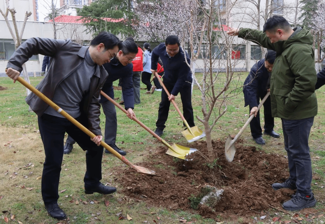 植树活动现场,党员师生与民族生混编成10个“民族团结植树组”,大家饱含激情、分工协作,共同栽种了象征民族团结的石榴树。黄洋、商学院领导班子成员带头挥锹填土,师生党员配合默契地扶苗浇水。
