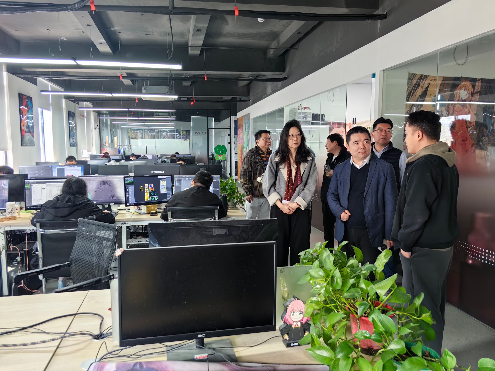 座谈会后,产业园区、苏州博派科技企业负责人陪同王贤波等人参观了位于虎丘的VR应用场景,希望与动漫学院开展进一步合作,在苏州开展VR影视体验新场景落地。通过此次交流,校企双方后续将共同针对数字内容产业技术瓶颈开展联合攻关,结合人工智能+教育,深入推动专业改革和人才培养创新,围绕产业对新兴人力资源需求,探索动画、数字媒体艺术等数字创意专业群的发展方向。