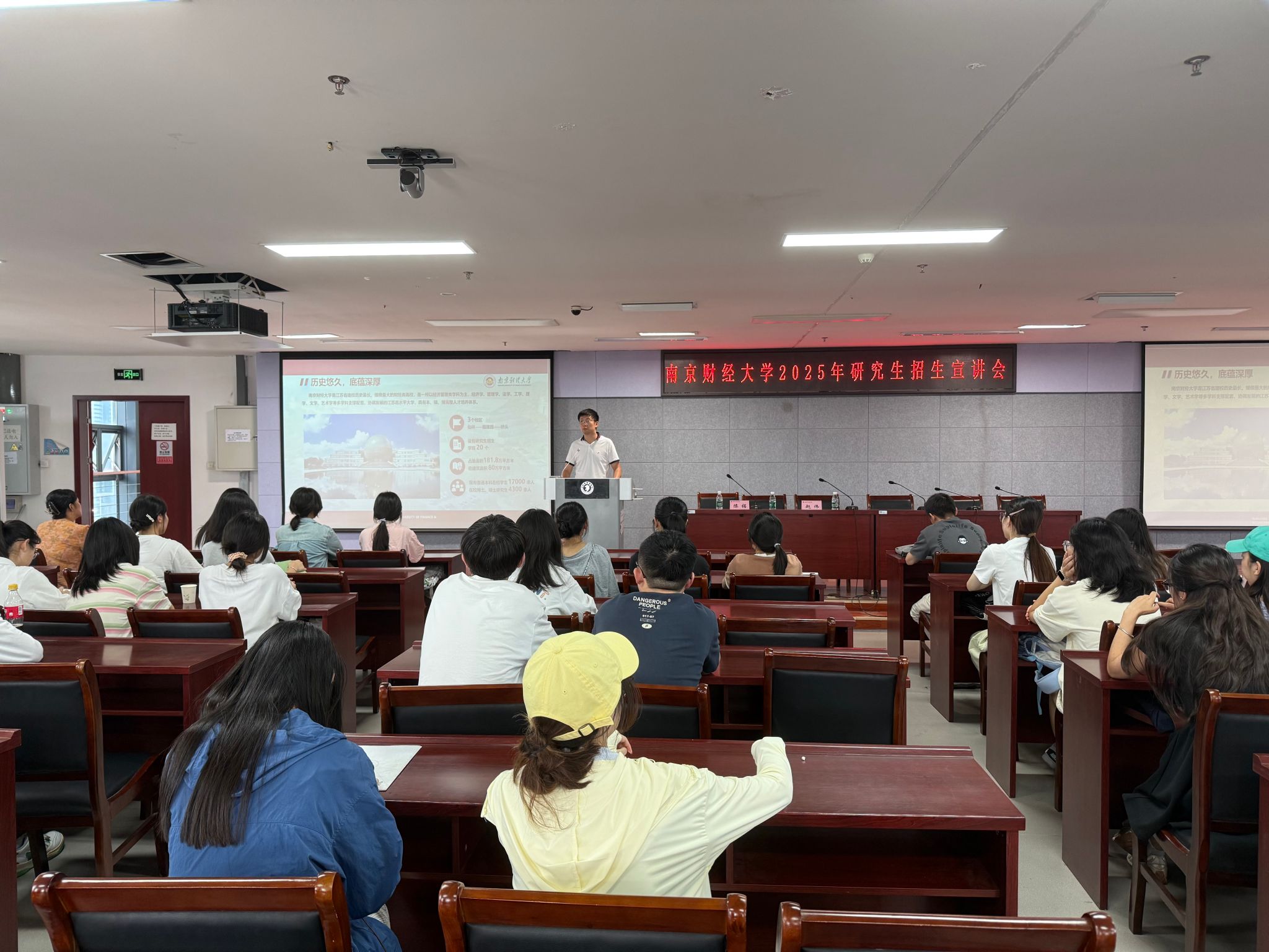 陈铭详细介绍了南京财经大学的办学历史、学科优势、校园文化以及近年来取得的卓越成就,重点聚焦于营销与物流管理学院。从学院发展历程、师资力量、科研平台、专业设置、人才培养特色及取得的丰硕成果等方面进行了全方位展示,生动描绘了学院雄厚的办学实力和良好的学术氛围;对南财营销与物流管理学院相关硕士点的研究方向、导师团队、招生政策、历年报录情况以及研究生就业前景等核心信息做了详细说明,并就同学们普遍关注的考试科目、复习重点、参考书目等进行了专项说明,鼓励同学们坚定信心,科学备考,欢迎优秀学子报考南京财经大学。