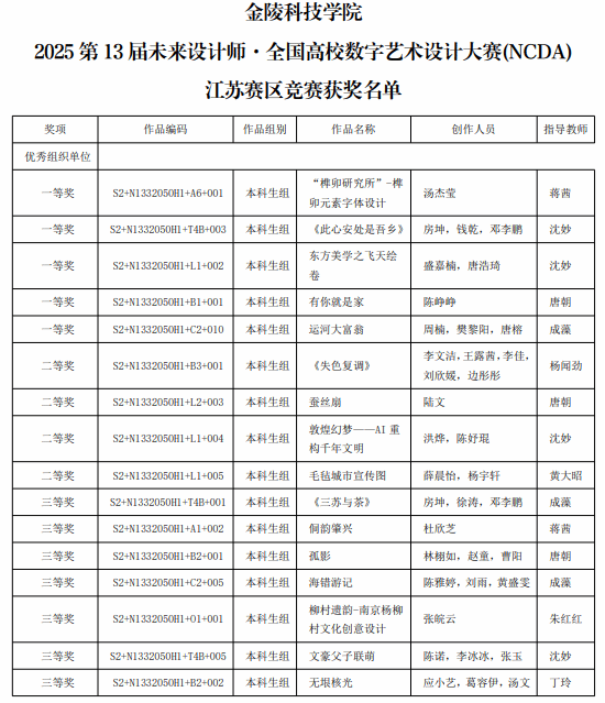 近日,第13届未来设计师·全国高校数字艺术设计大赛揭晓,beat365正版唯一官网必一动漫学院获得江苏省赛区十六项奖项(其中一等奖五项),国家总决赛四项奖项。beat365获得优秀组织奖,沈妙、唐朝获得优秀指导教师,成藻获评为优秀组织教师。