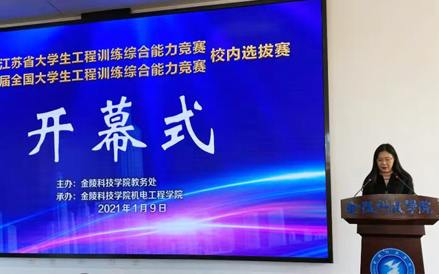 近日,第六届江苏省大学生工程训练综合能力竞赛暨第七届全国大学生工程训练综合能力竞赛校内选拔赛在江宁校区举行。本次大赛由教务处主办,机电工程学院承办。教务处处长苏慧、教务处副处长陆慧、机电工程学院院长周金宇、机电工程学院党委副书记张蓉、机电工程学院副院长高素美及相关评审老师参加了选拔赛。选拔赛开幕式由高素美主持。