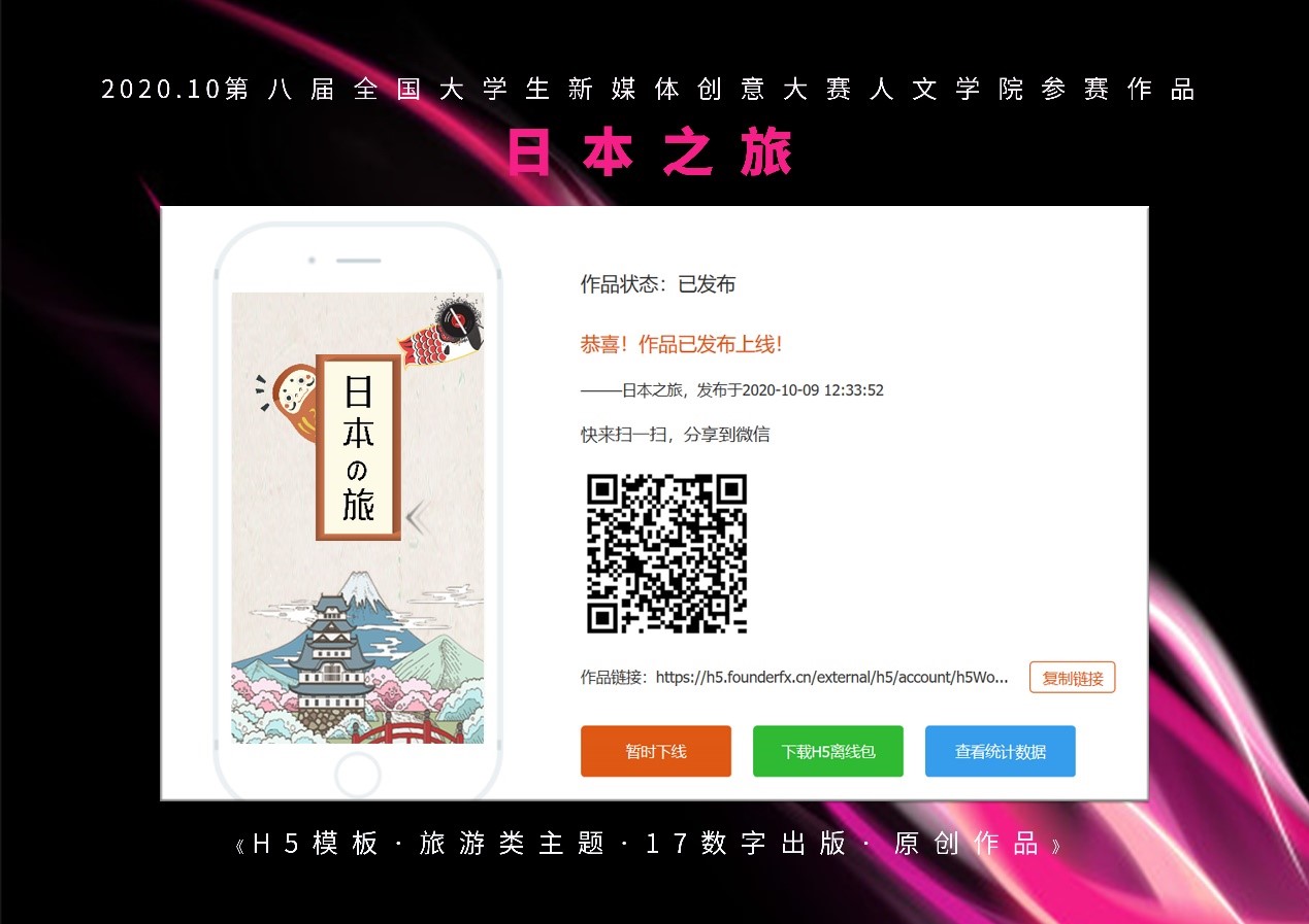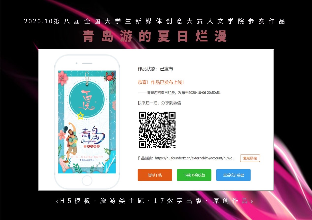 3月4日,第八届大学生新媒体创意大赛获奖名单揭晓。beat365人文学院数字出版专业共有3部作品获奖。其中18数字出版(1)班刘思琪、刘梦欣、许蛟波的H5作品《项链》在“书香作伴·阅读随行”主题的比赛中获二等奖,17数字出版(1)班刘冰的《日本之旅》、丛若楠的《青岛游的夏日烂漫》分别获得HTML5模板设计三等奖。