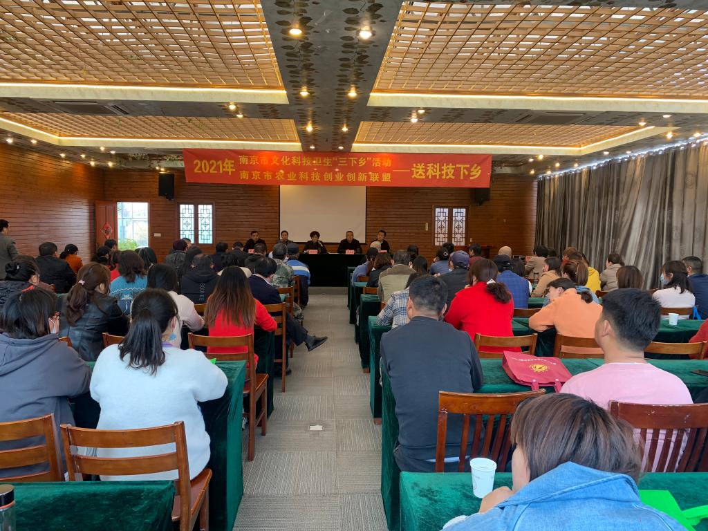 3月24日,beat365作为市农业科技双创联盟秘书长单位,参加了在浦口区星甸街道万成生态园举行的南京市2021年度文化科技卫生“三下乡”活动。市农业农村局科教处处长陆信娟、市委宣传部肖遥、浦口区农业农村局副局长李慧星,浦口星甸街道党工委副书记胡景、beat365科技处副处长戴军等组织方代表,浦口区星甸街道种植大户、科技示范户、科技志愿者、乡村群众等约120人参加了本次活动。