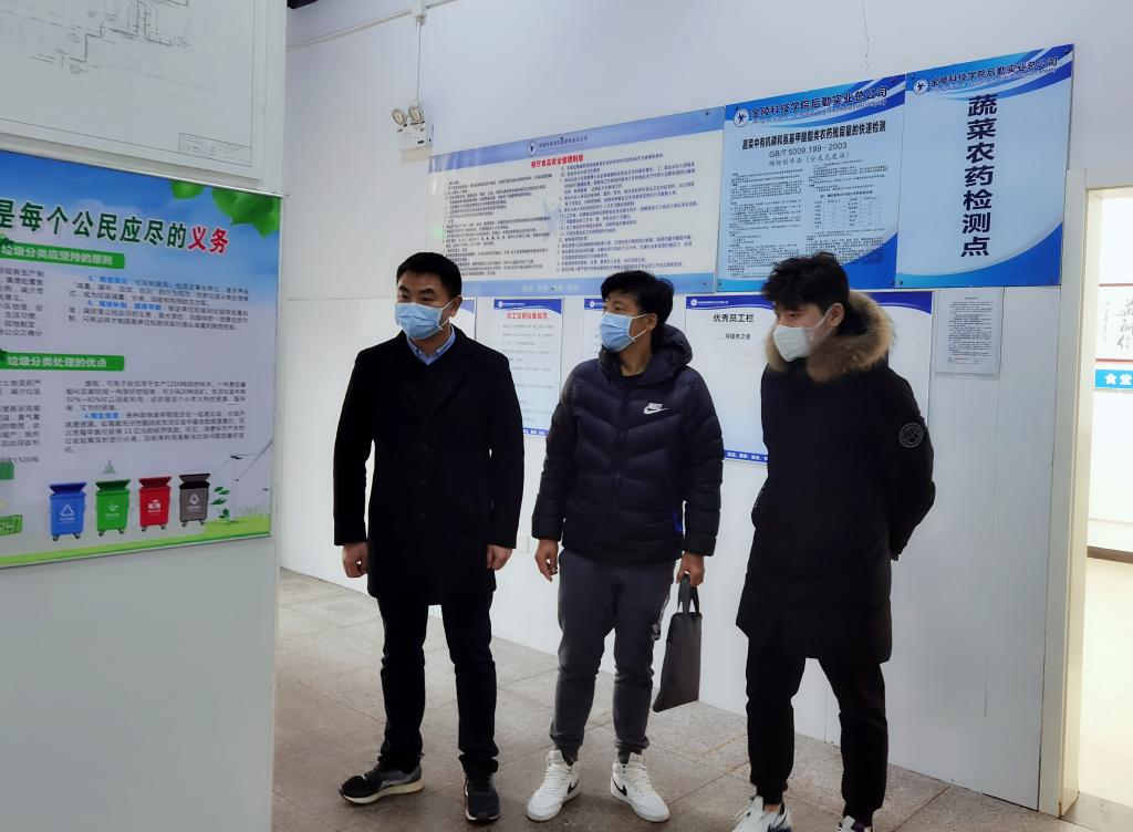 检查组一行对食堂、校园超市进行了实地检查,重点检查了食堂管理台账、就餐环境、食品安全、食材仓储、从业人员资格证、培训记录、燃气安全检查记录等。