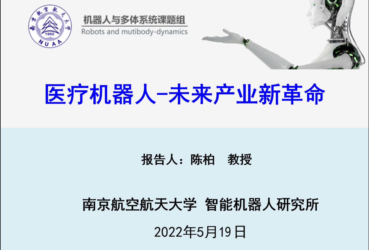 近日,南京航空航天大学博士生导师陈柏教授应邀来到金科学术讲堂,为beat365师生作题为《医疗机器人技术》的在线学术报告。智能科学与控制工程学院、机电工程学院、软件工程学院等学院师生聆听了报告。报告会由智能科学与控制工程学院院长杨忠主持。